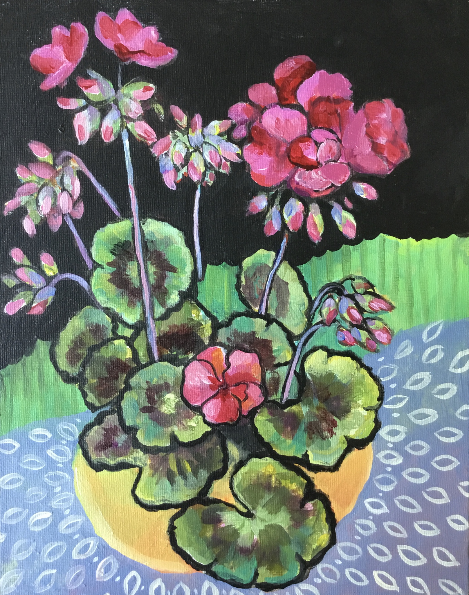 Geranium in beeld geschilderd op canvas-board