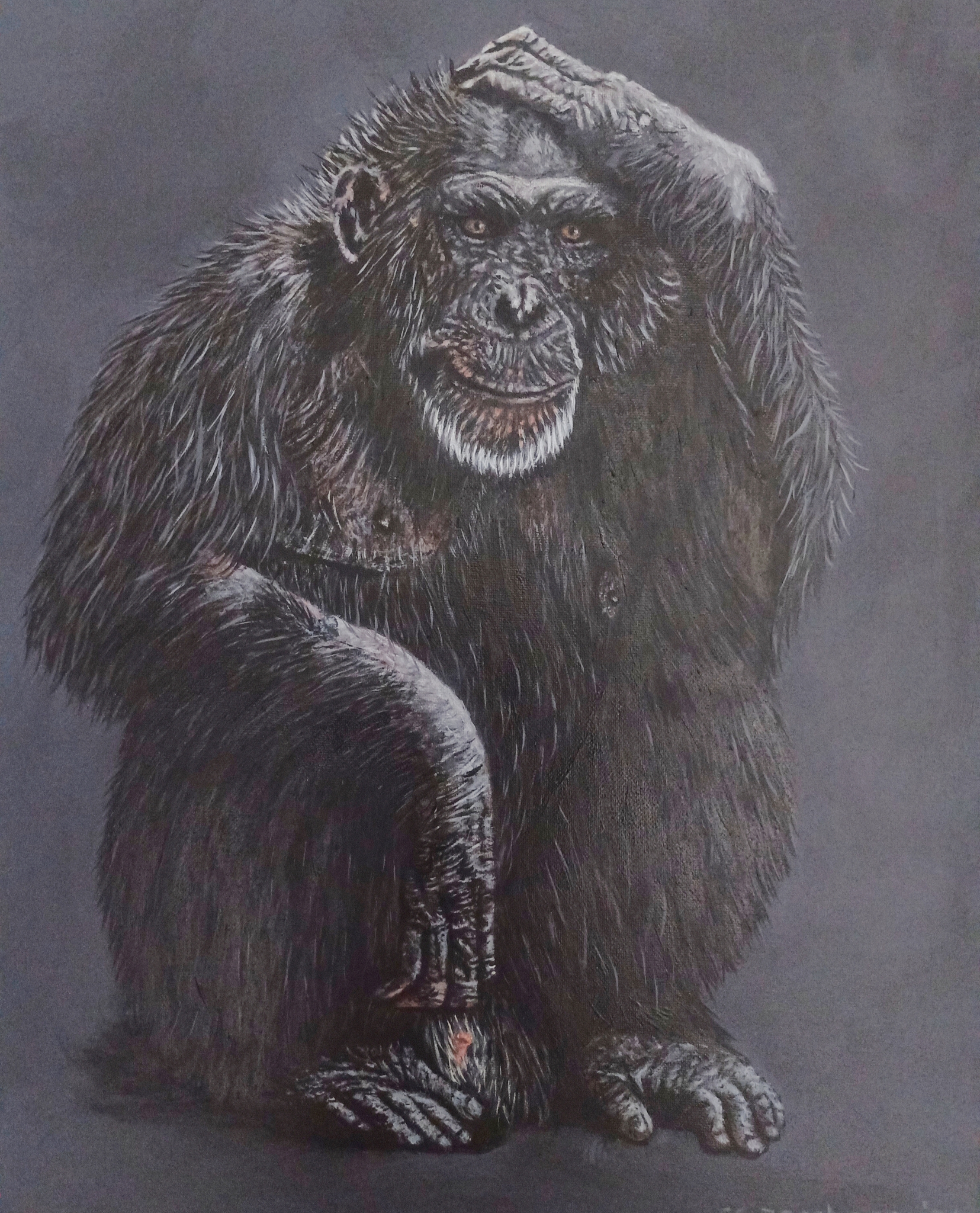 Gorilla, Asjemenou zegt de aap. Wat staat me vandaag weer te wachten 😁 Acrylverf op canvas 40 x 50 cm Glans vernis In grijze baklijst