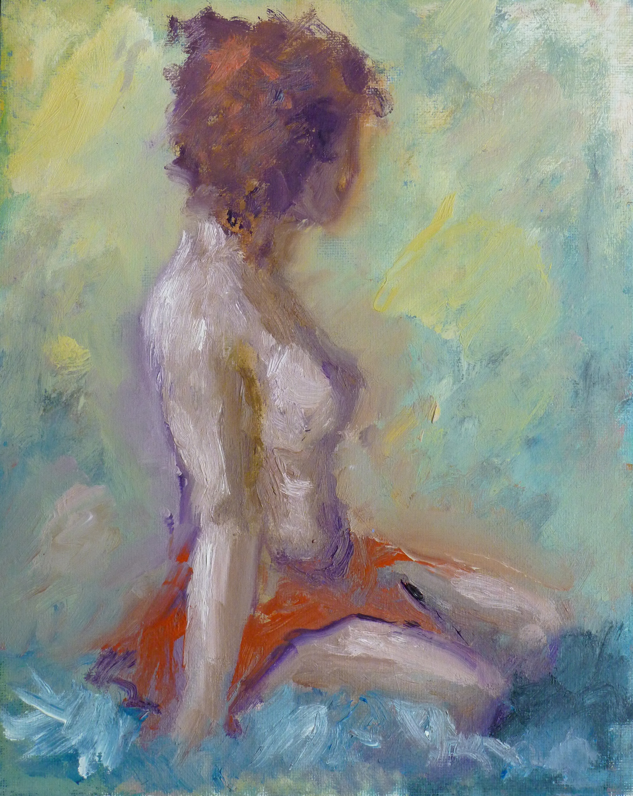 Meisje Figuratief Vrouw Naakt Zittend Impressionistisch Zonnen