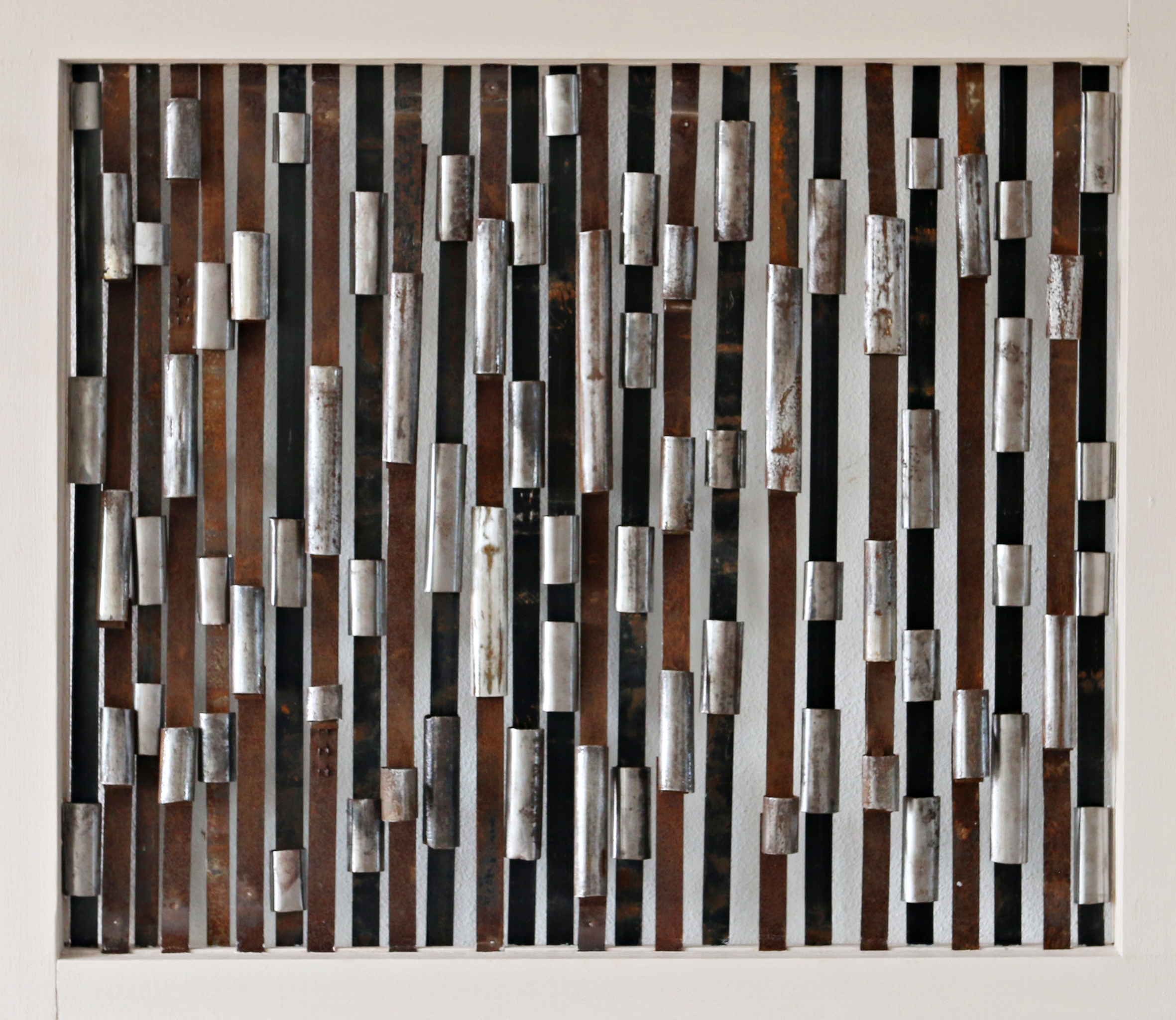 Samengesteld uit geroest metalen strips en buizen van bouwplaats