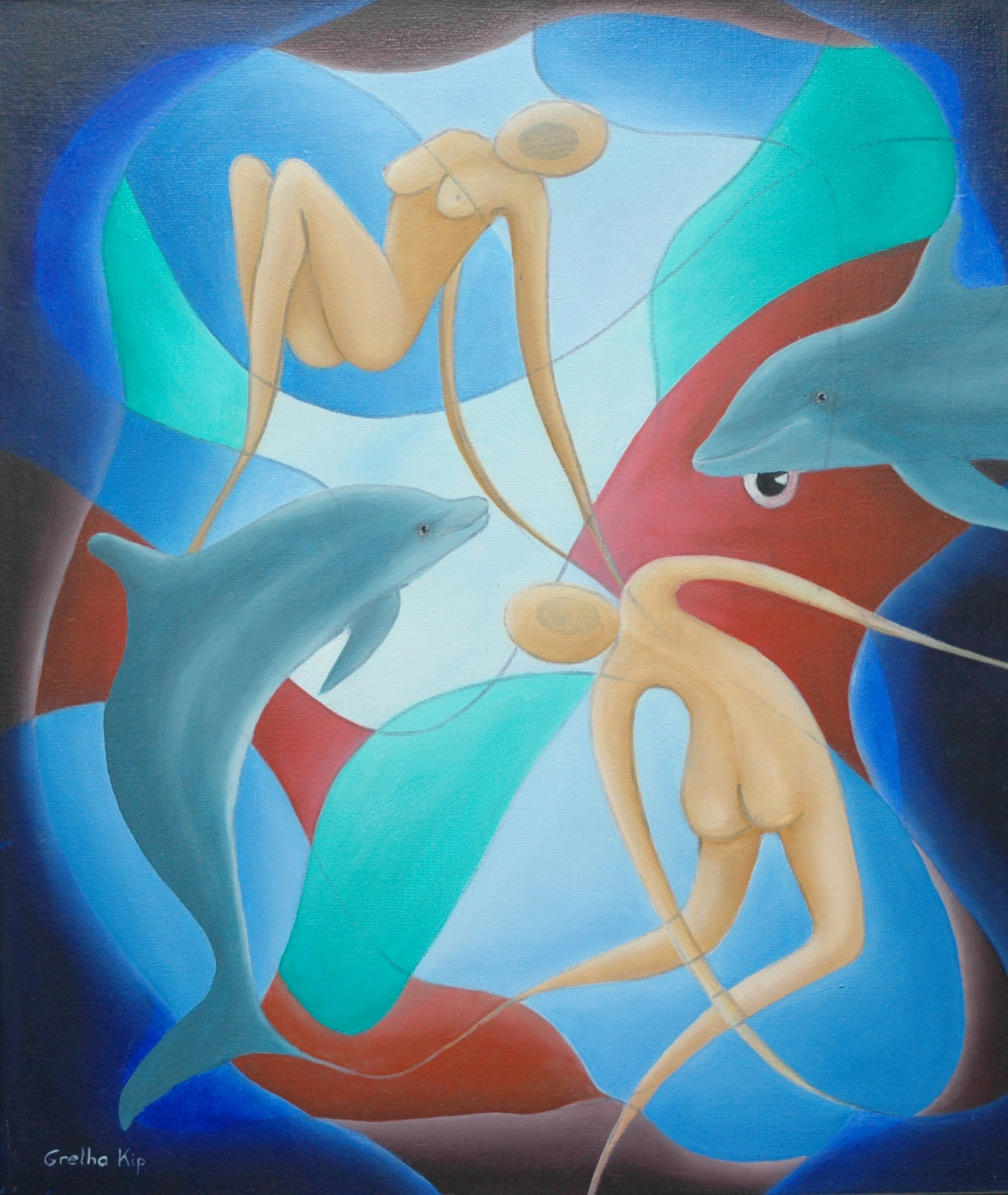 Abstract Mensen Kleurrijk Olieverf Vissen Dolfijn