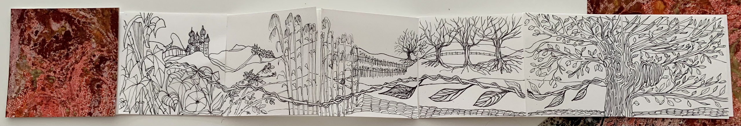 leporello met fantasietekening geinspireerd op natuur, sprookjes en dromen