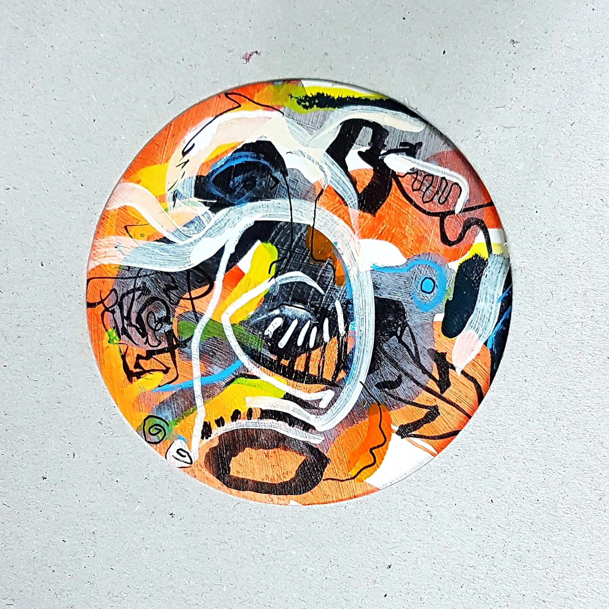 Moderne kunst op een bierviltje in passe-partout van naturel karton. A5 formaat