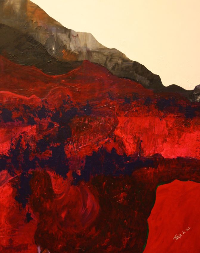Schilderij Grijs Rood Landschap Blauw Bruin Groot