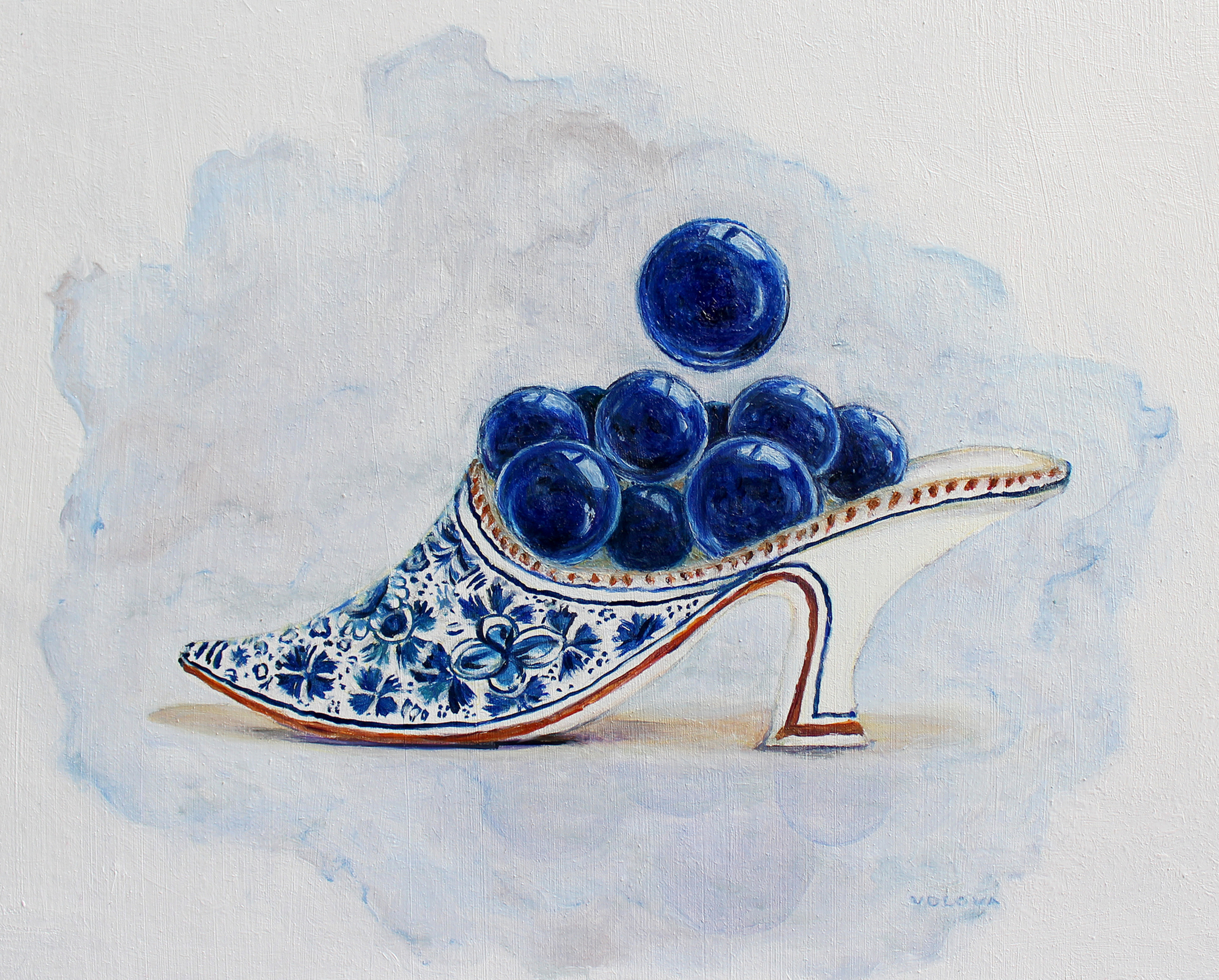 Blauw Realistisch Olieverf Natuur Knikkers Slipper Muiltje Mort #art_volova #delftsblauw #knikkers #mini
