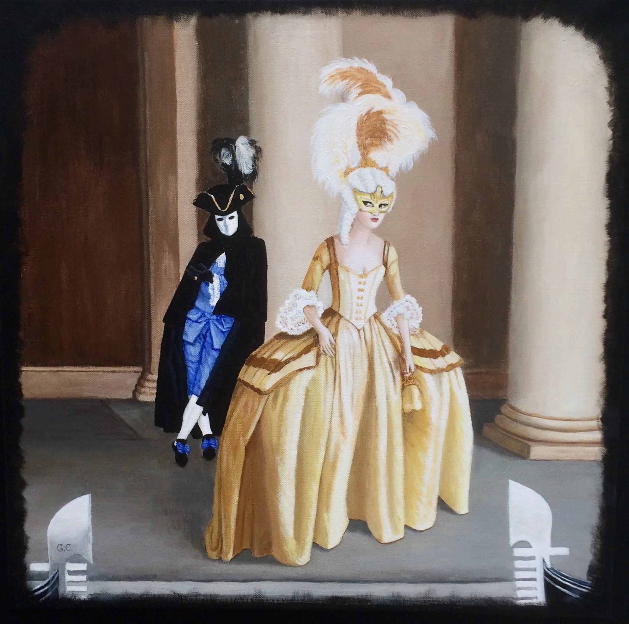 Ook nu nog viert men carnaval in Venetië als in de 18e eeuw..... Het werk deed mee in de ledententoonstelling "Masquerade" in 2021 van de modeltekenclub van Artishock-Soest.