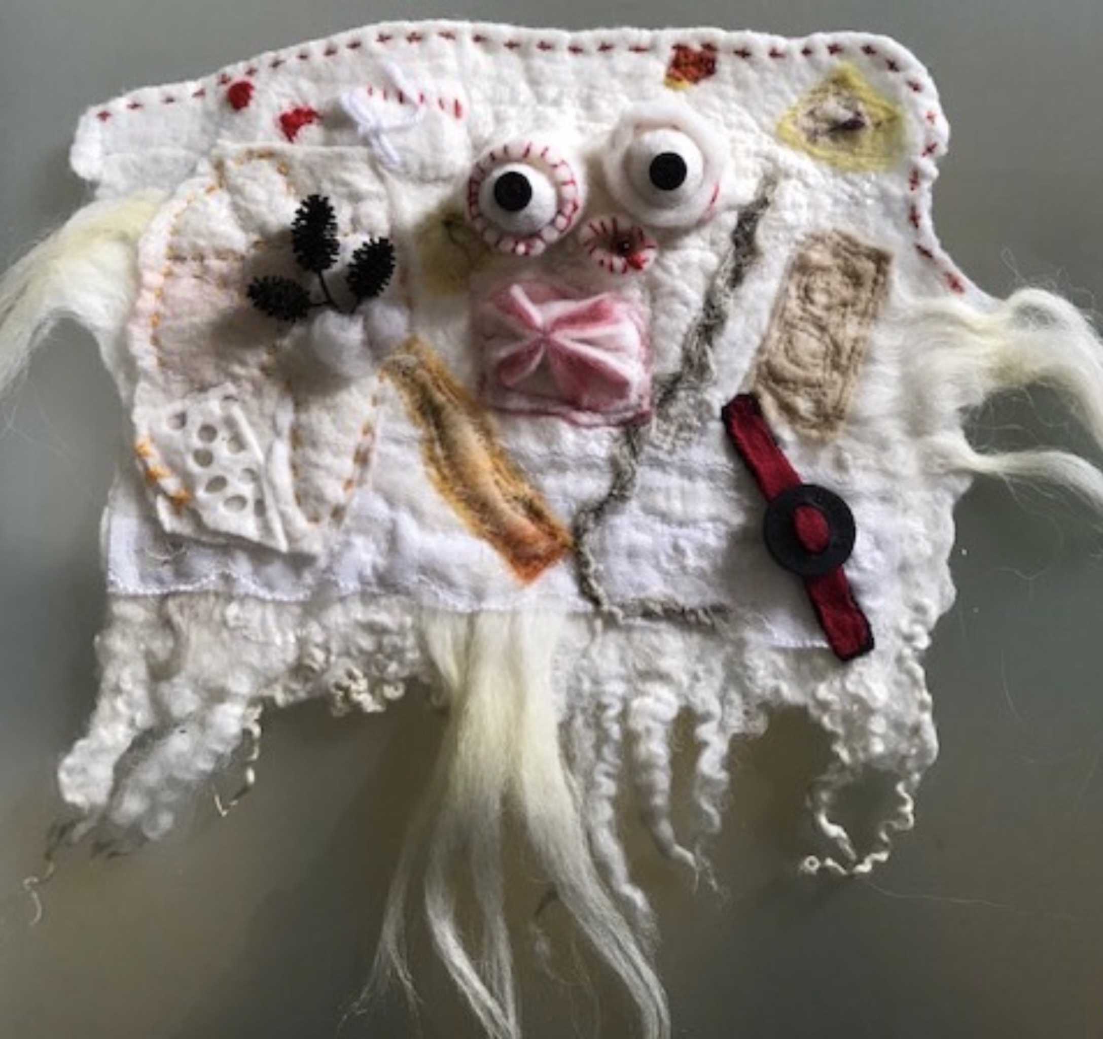 Na jaren vilten ontdekte ik ecoprinten, dwz uit bladeren en bloemen de afdruk weergeven op textiel of papier. Vooral werken met geitenleer heeft mijn voorkeur. Ik maak er vaak tasjes van.