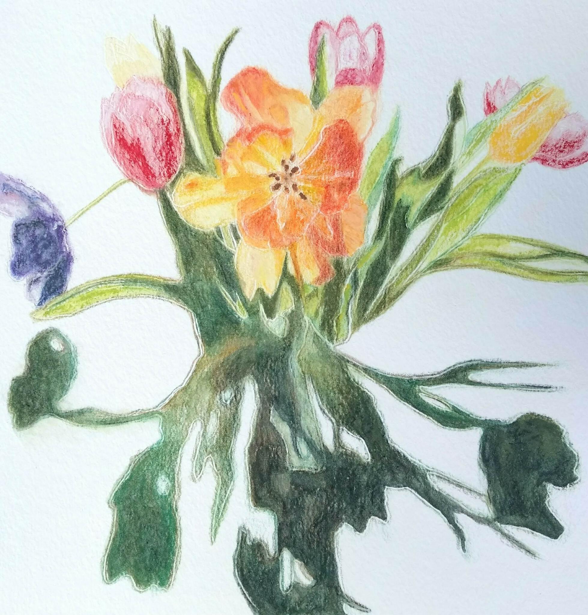 Oranje Geel Paars Tulp Groen Papier Bloem Roze Aquarelpotlood Schaduw