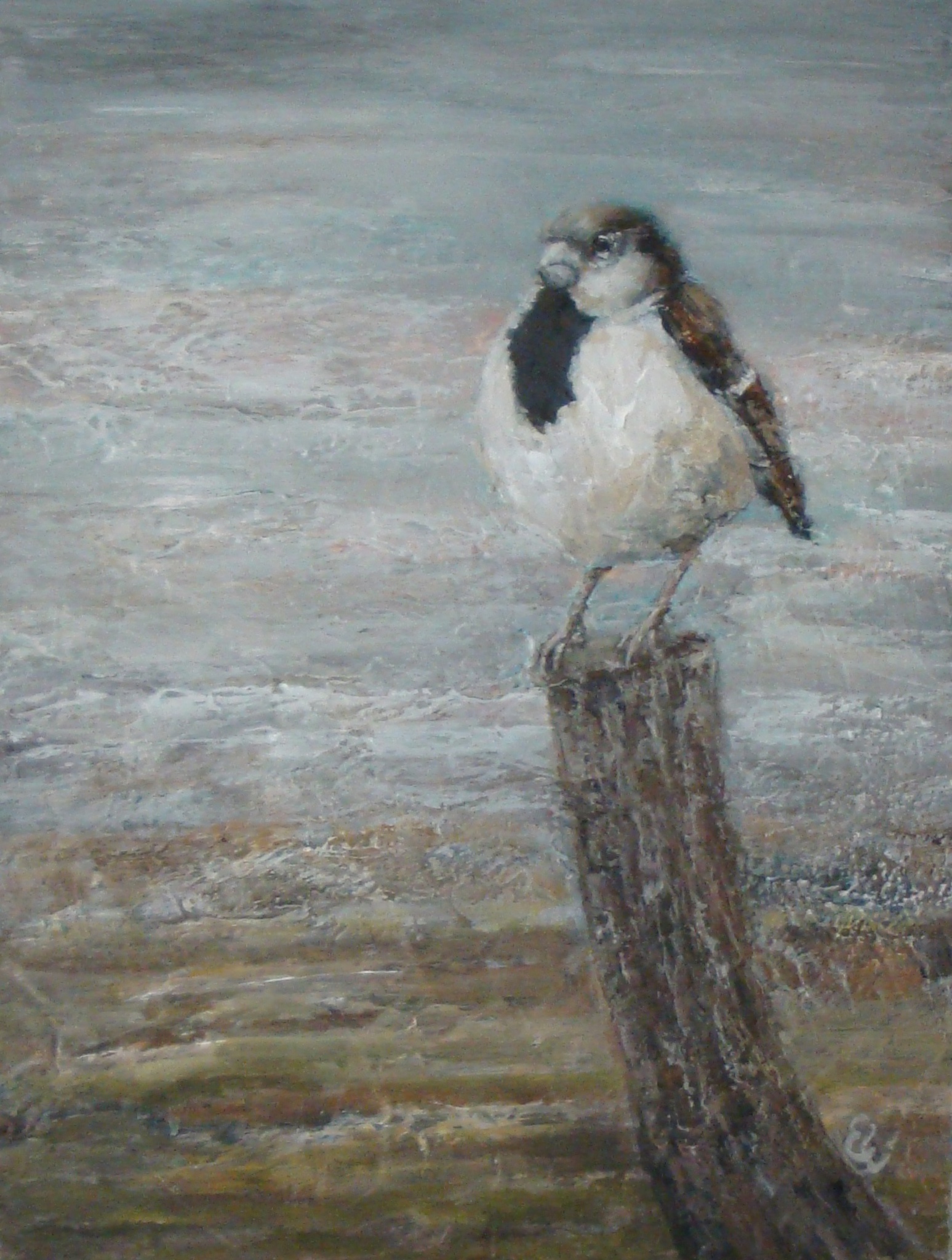 Mus Vogel Realistisch Acryl Grijs Wit Bruin Oker