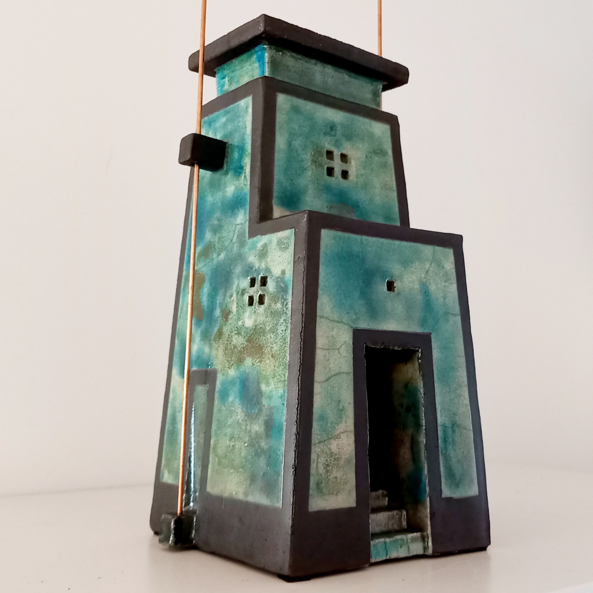 Ik ben architect (1947) en kom uit Haarlem. Na mijn pensionering ben ik keramiek gaan maken. Ik maak (naast geometrische vormen, schalen en vazen) veel zelfontworpen gebouwtjes.