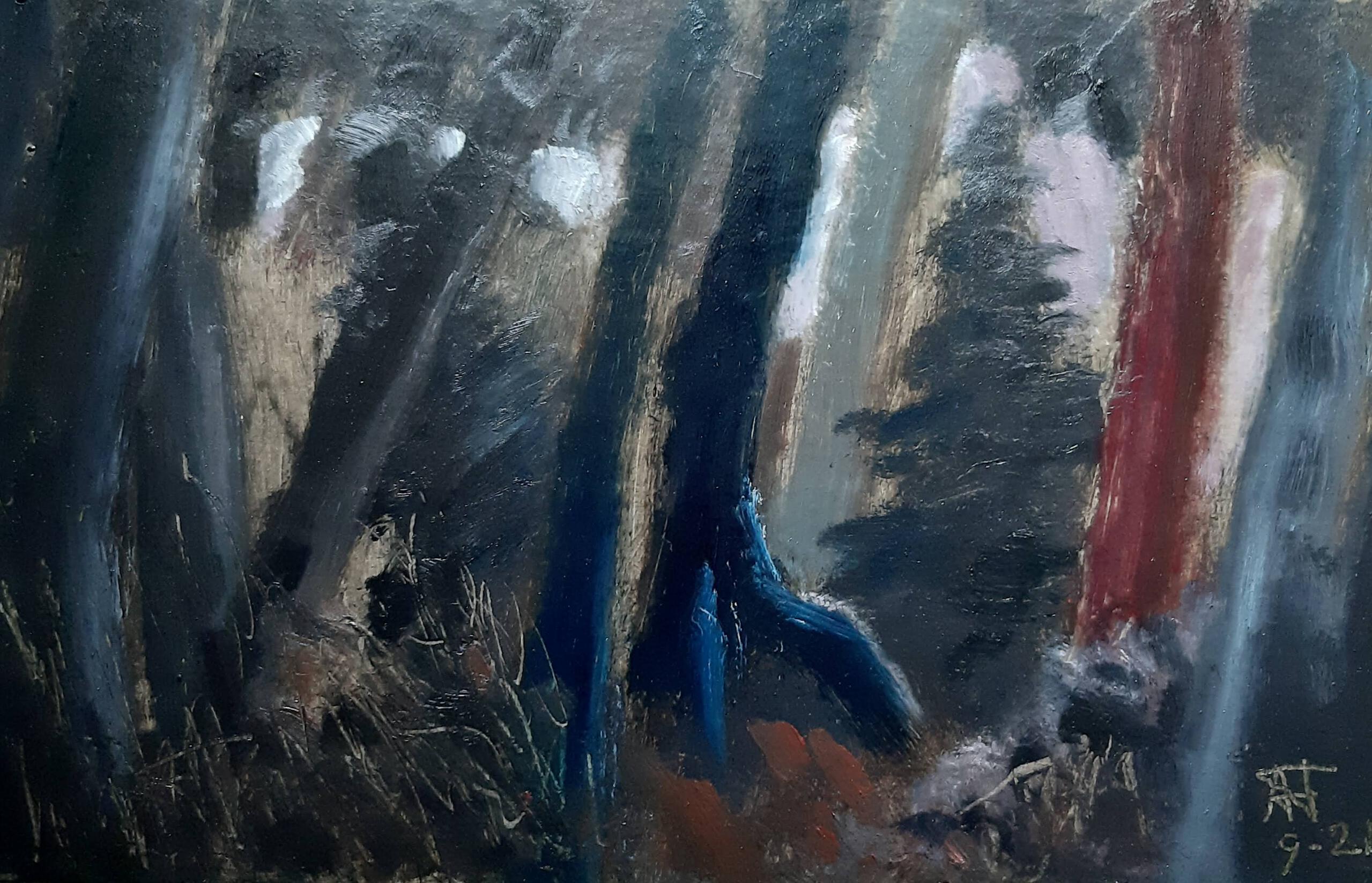 Vogel Licht Olieverf Bomen Donker Tegenlicht Woud