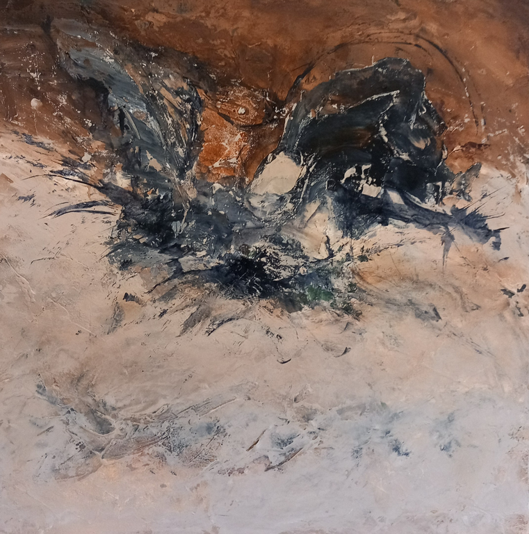 Zeer minimalisitsch opgebouwd... laag per laag... uiteindelijk diepte gecreeerd .