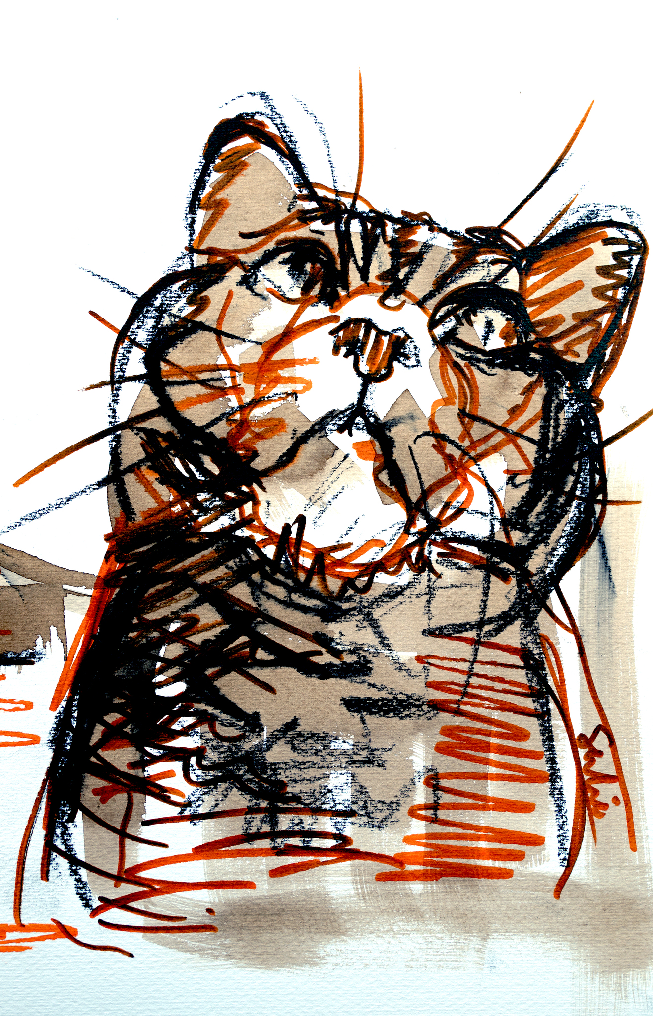 Schilderij Expressief Portret Schets Dier Kat Kunst Grafisch