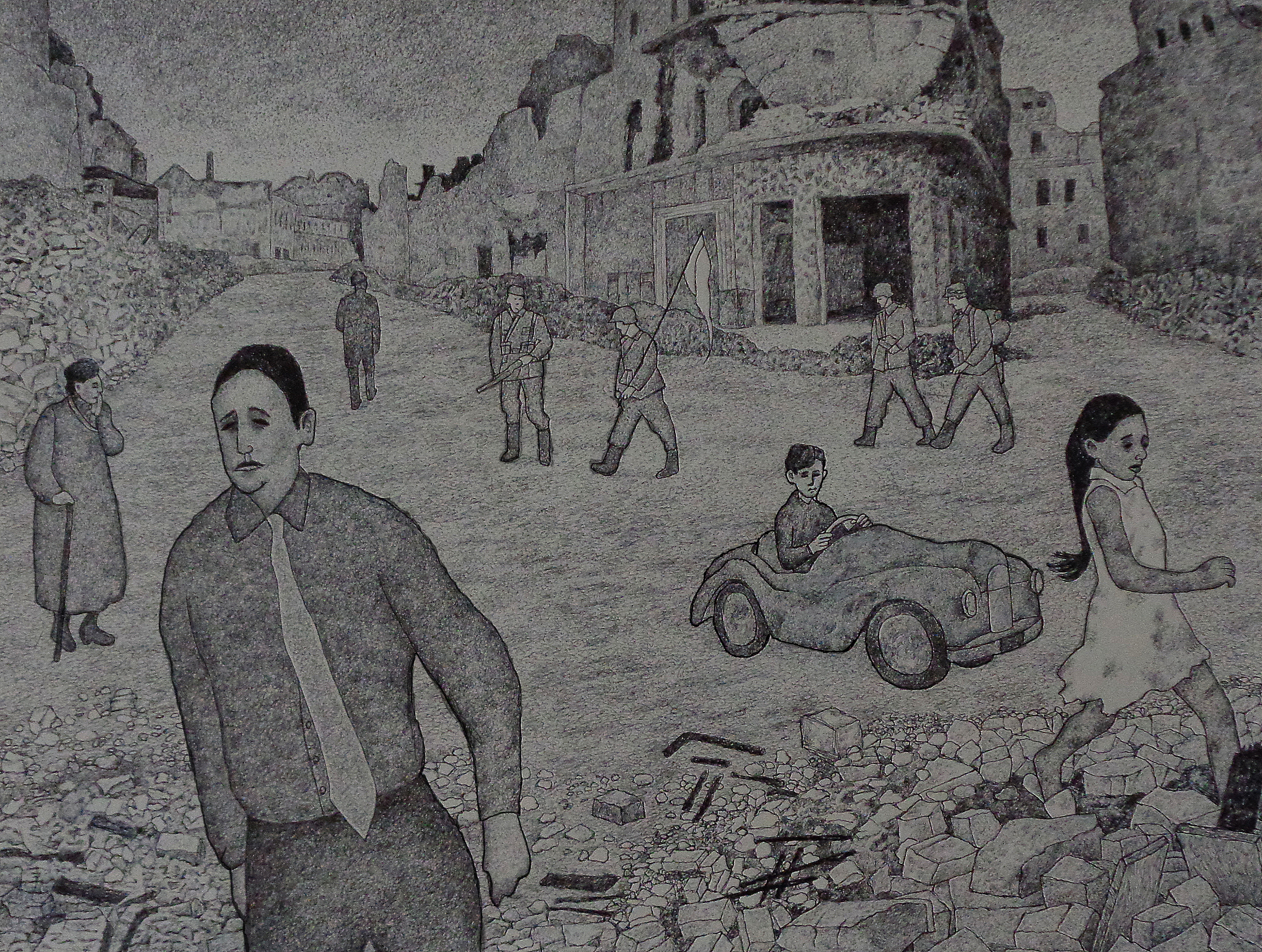 Werkt voornamelijk met Acrylverf, potlood en inkt. Is autodidakt.