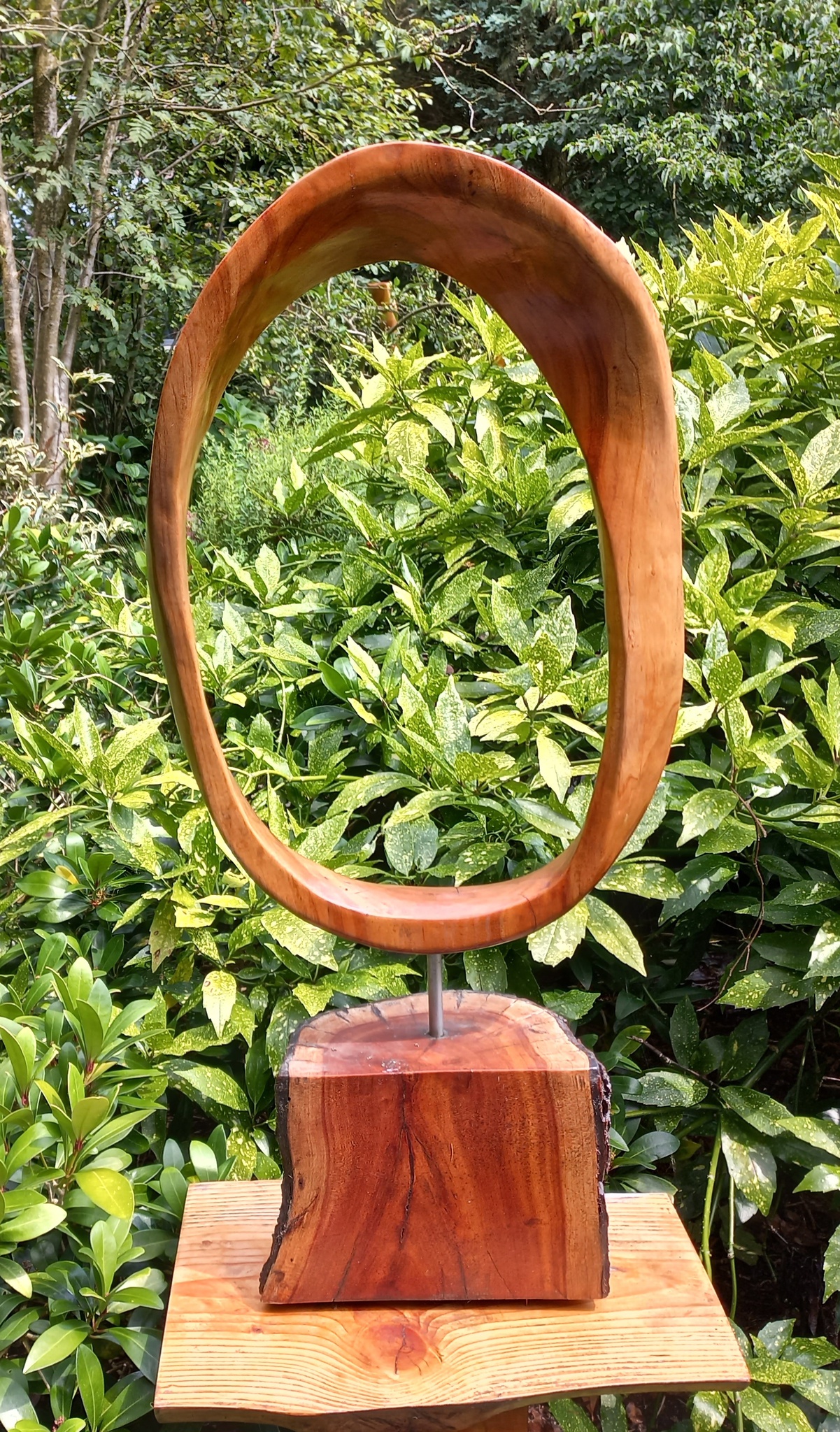 Deze Möbius is gemaakt van Amerikaanse Vogelkers met een subtiele tekening De sokkel is van dezelfde houtsoort
