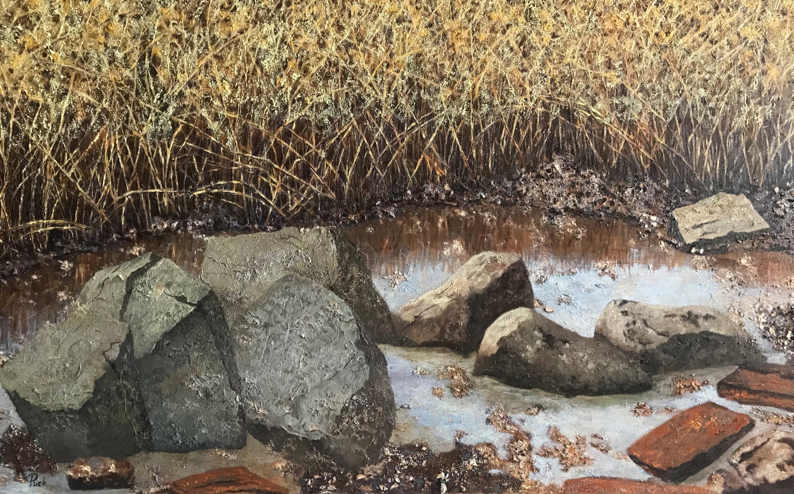 Ik schilder de landschappen en zeegezichten in mijn directe omgeving. Na vele studies in het veld maak ik nu grote doeken in mijn atelier. Realistisch, in olieverf.