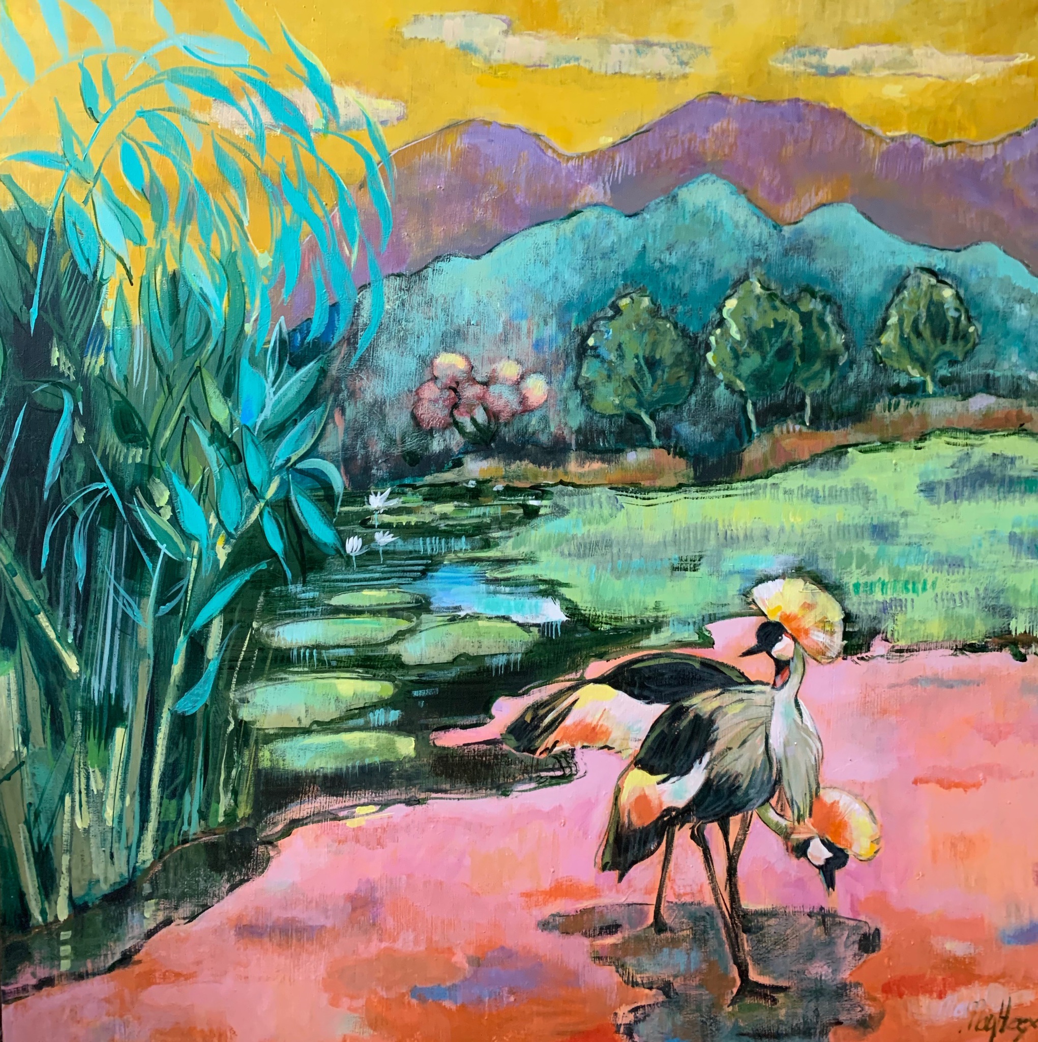 Kraanvogels in landschap