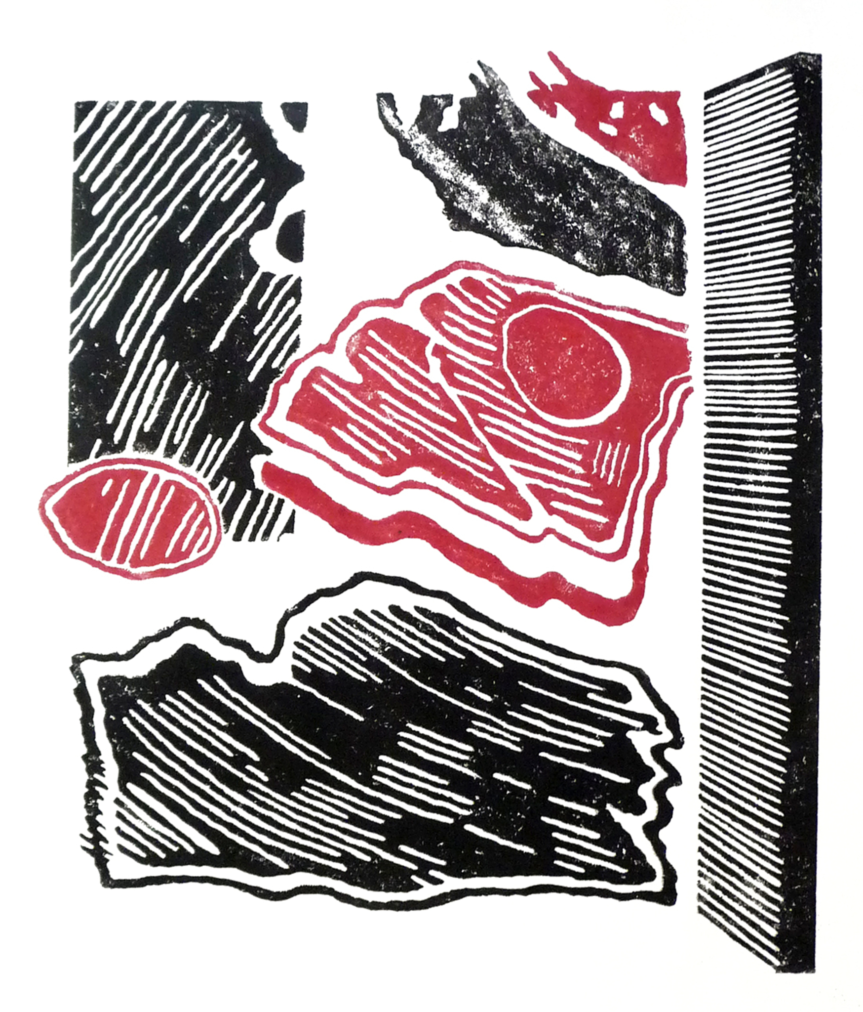 Wit Abstract Rood Zwart Beweging Red Black White Lino Movement Catch Blockprint