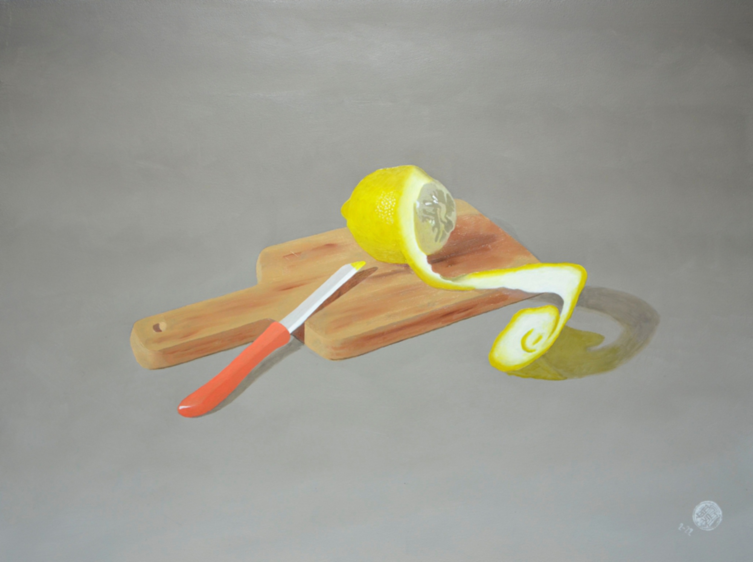 Citroen met Mesje, Weekopdracht-1 van Project Rembrandt, januari 2022. Olieverf op paneel 40 x 30 cm.