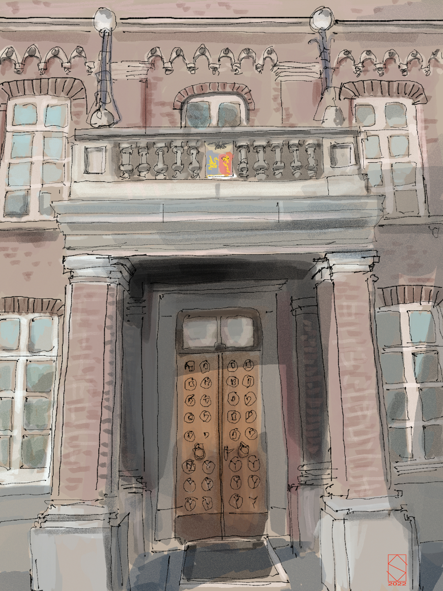 Snelle schets, ingang van het voormalige Raadhuis te Blerick.