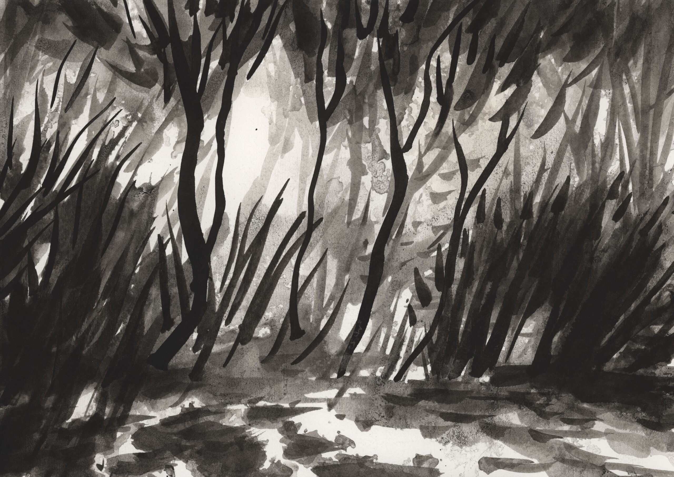 Natuur Bos Inkt Zwartwit Monochroom