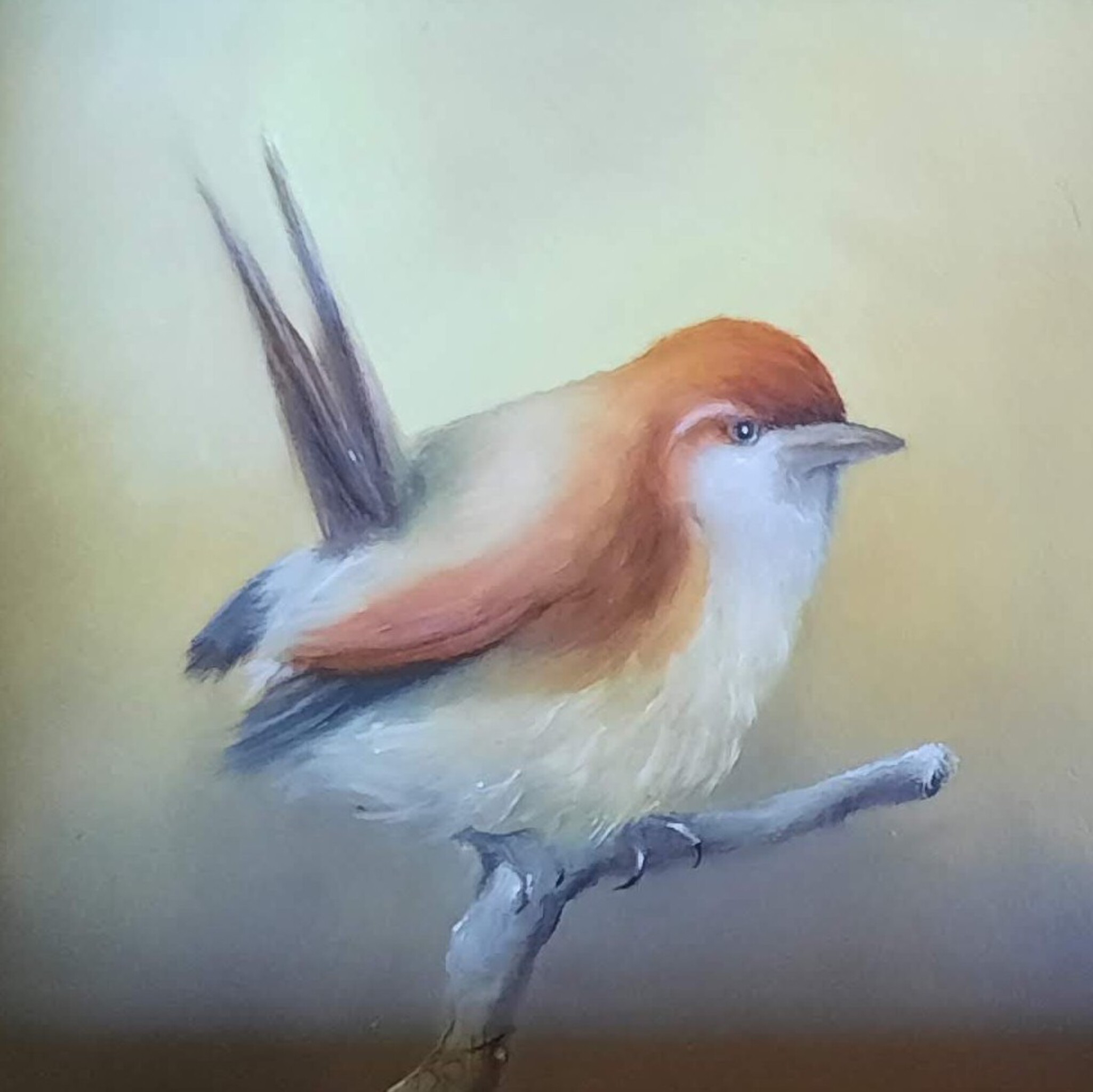 Olieverf Winterkoninkje Mus-paneel
