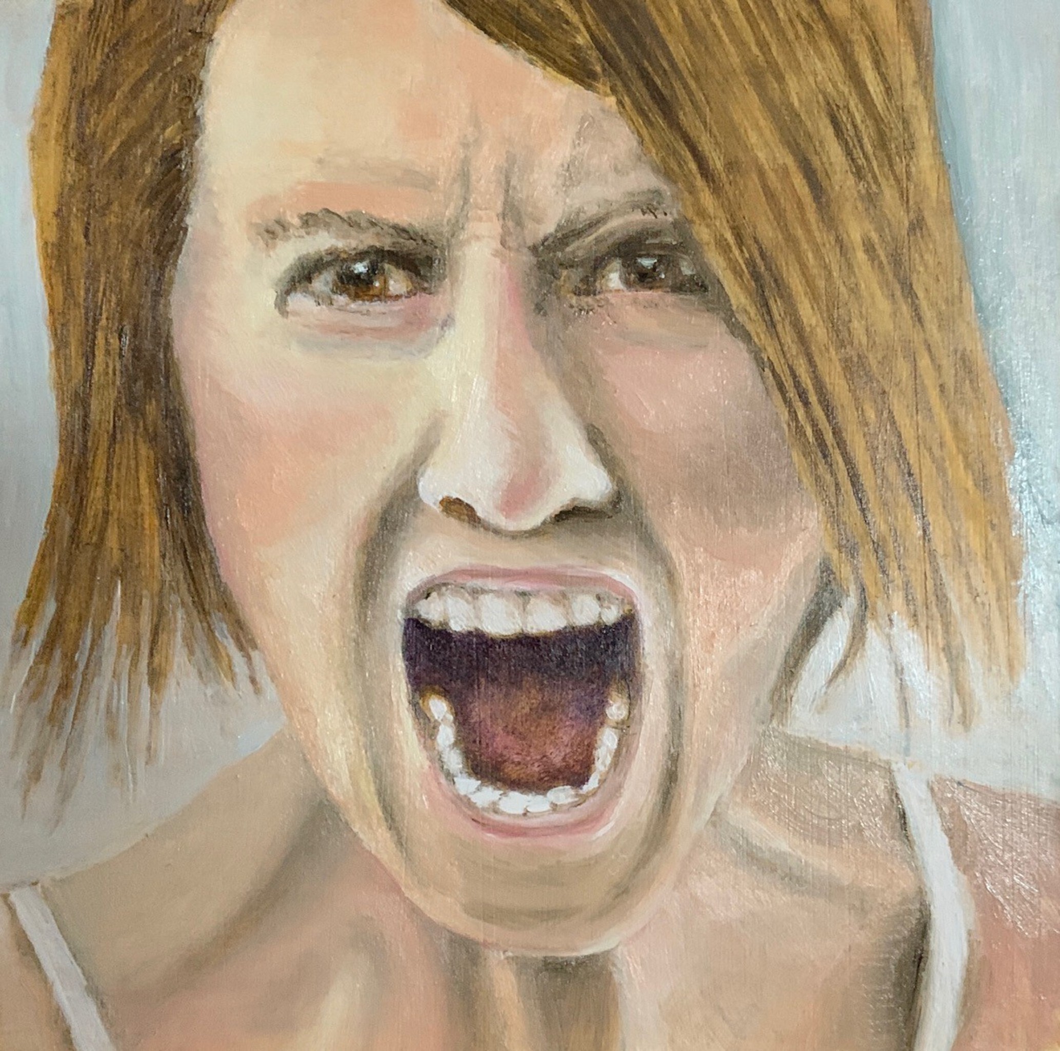 Een boze vrouw in verf gegoten