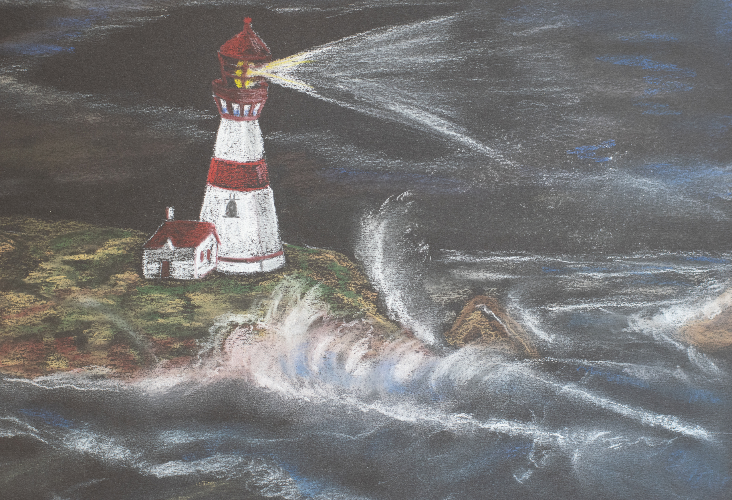 Storm op zee. Vastgelegd met pastelpotloden (krijt).