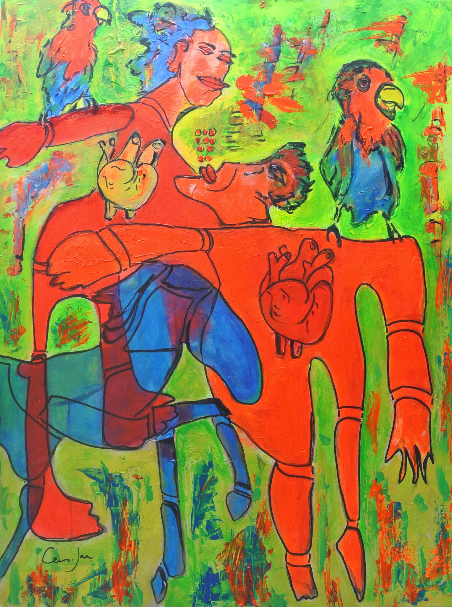 Een combinatie tussen fantasie en werkelijkheid zijn de elementen waaruit de schilderijen bestaan.