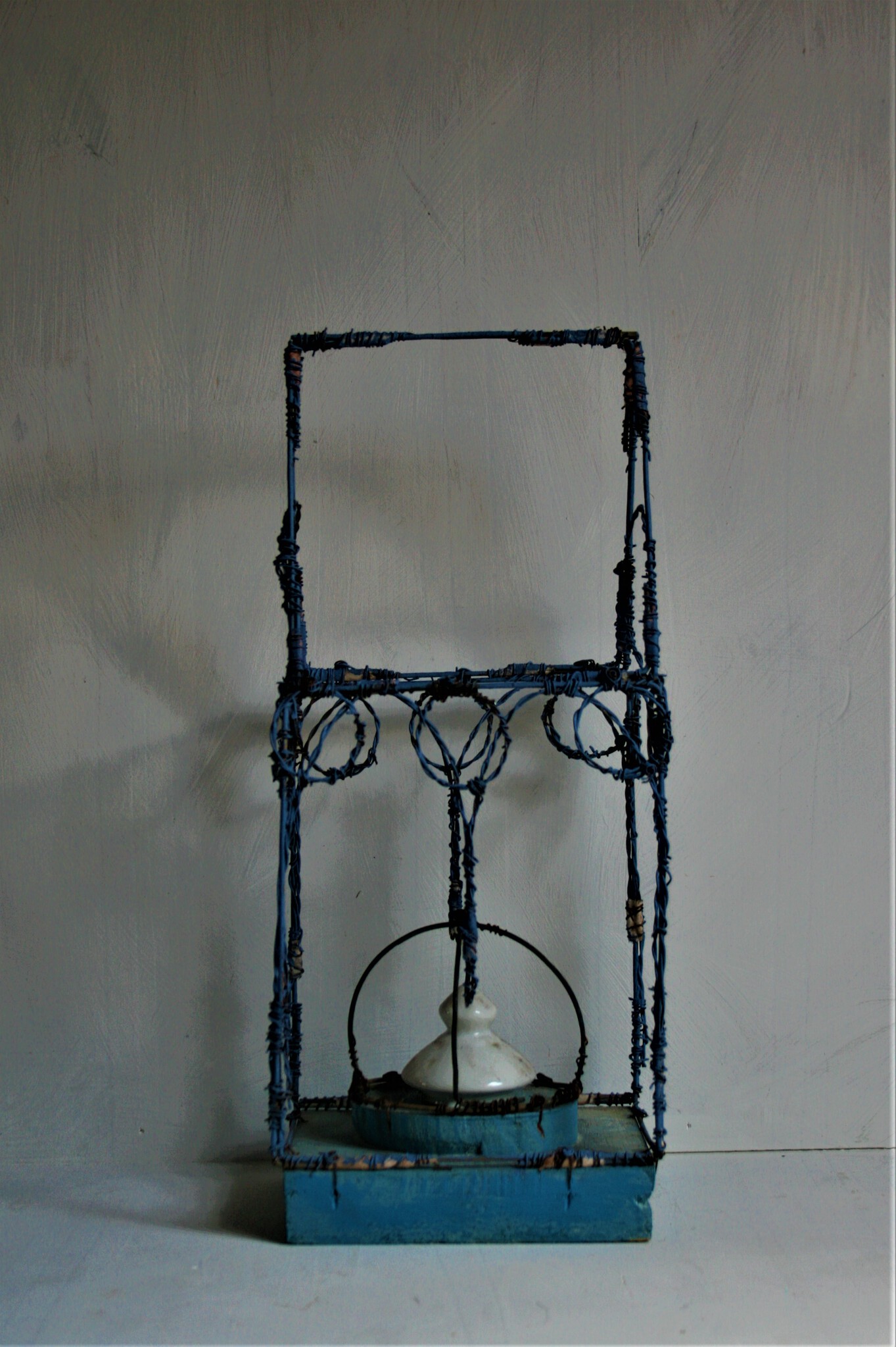 fragment, afval, ijzerdraad, hout, acrylverf