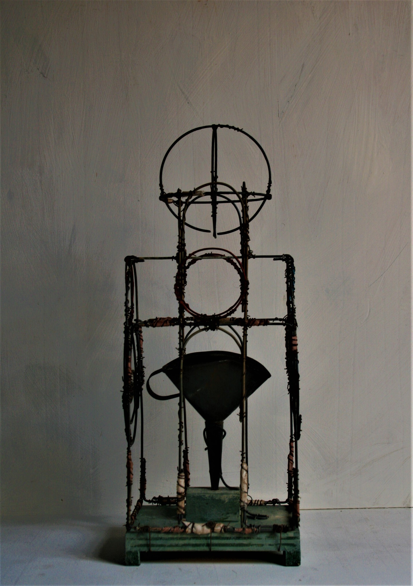 fragment, afval, ijzerdraad, hout, acrylverf