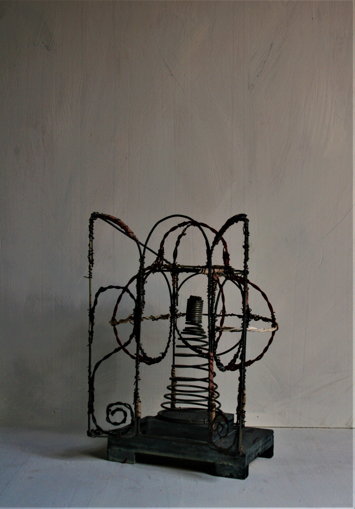fragment, afval, ijzerdraad, hout, acrylverf