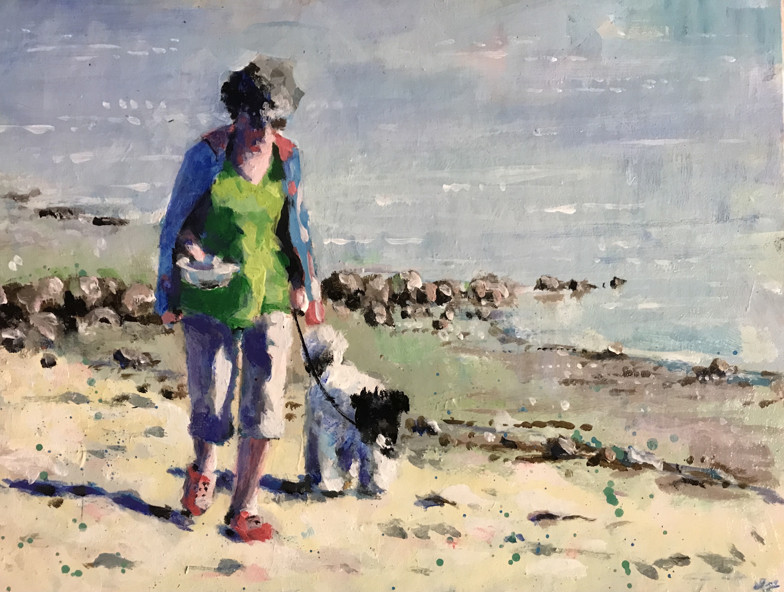 Vrouw met hond op strand