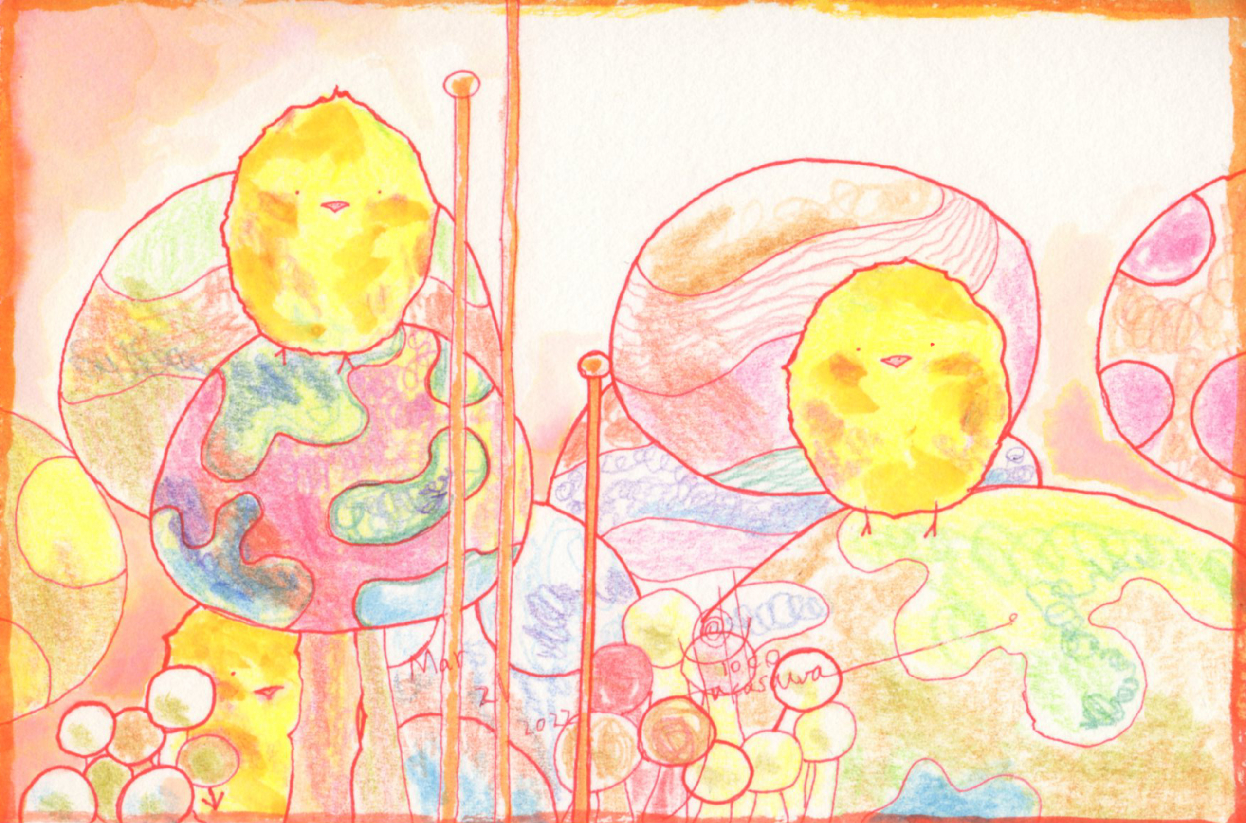 Yoko Fukasawa was born in 1982. 2001-Japan traditional craft department,Metal crafts major 2001-Volkswagen new Beetle - art contest The third place. 2002-TOKYO DOME - Tableware festival Fine work. 2017-And Schizophrenia has been revealed. Her paintings are outsider art. They are characterized by simple shapes and bright colors. She wants you to look at them and relax.