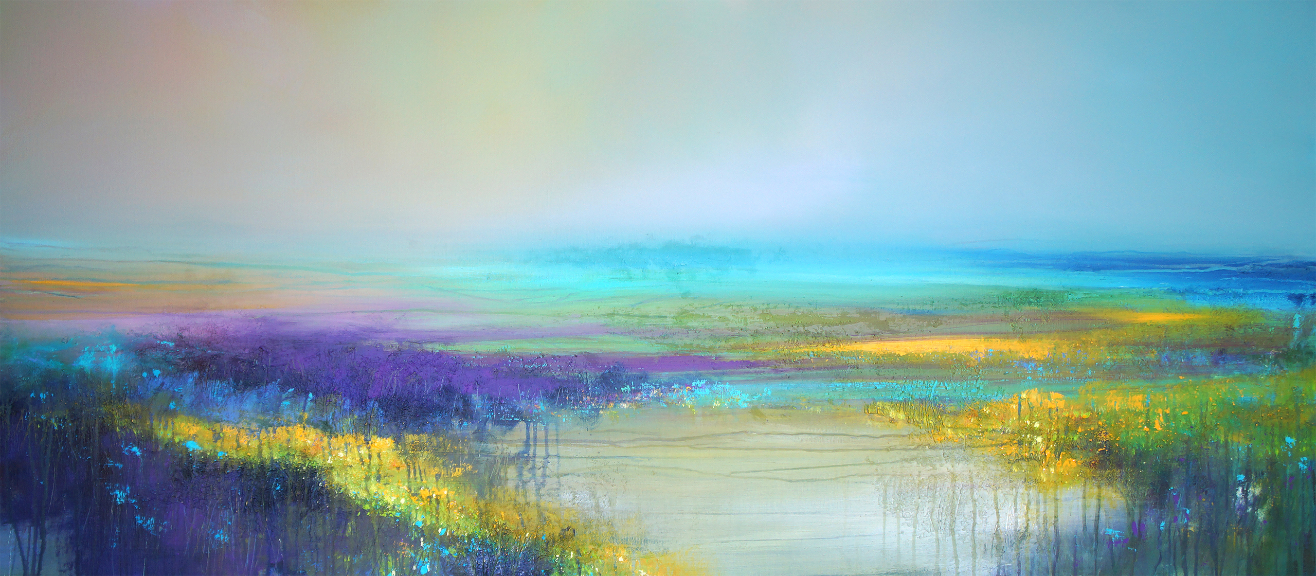 Wit Geel Landschap Blauw Paars Spiritueel Bloemen Bruin Natuur Groot Roze Weiland Textuur Rustgevend Aqua Liggen Engeland Weids Xl Kalmerend