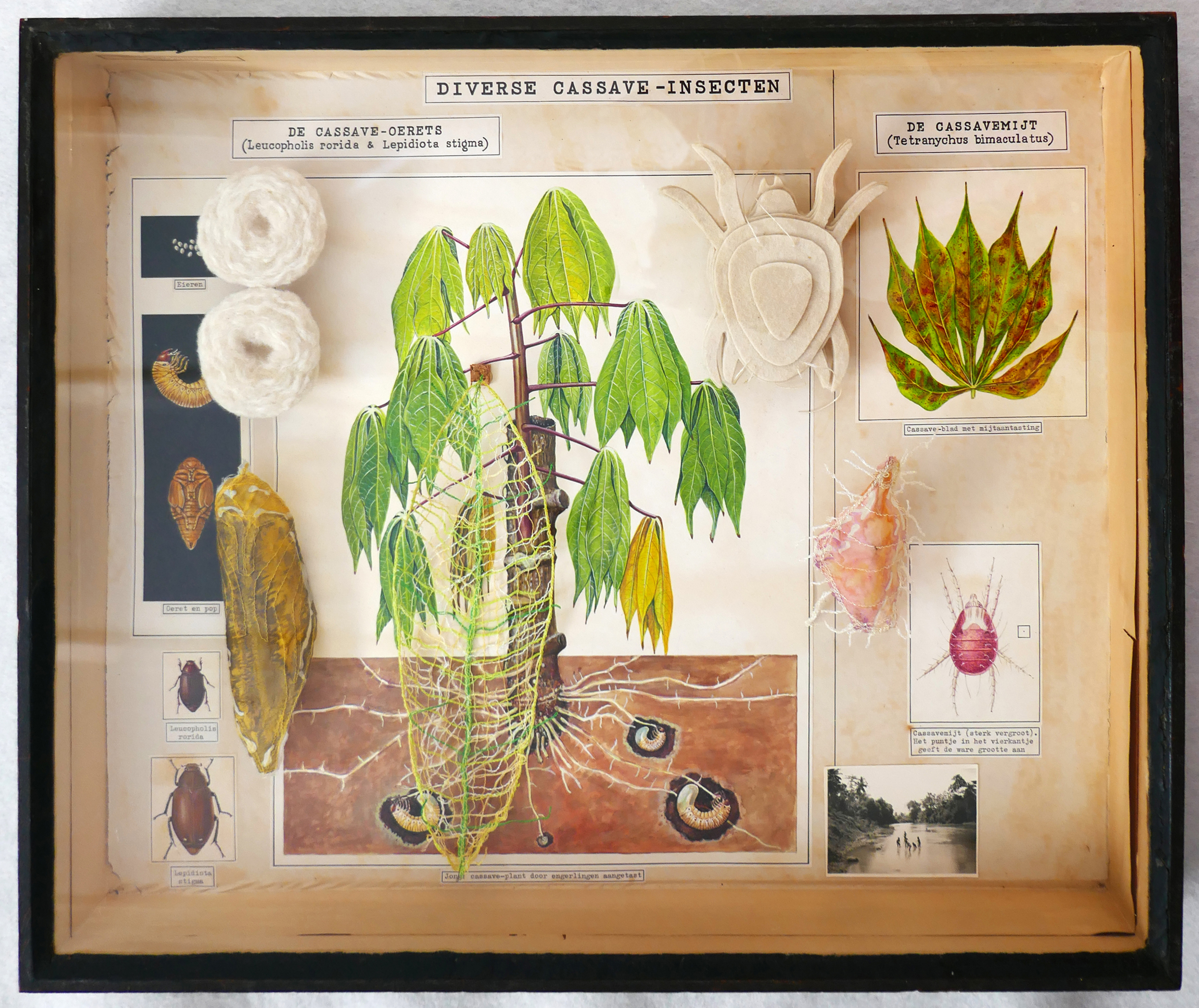 Cassave, orginele insectendozen, wol, zijde, naaigaren. Foto met deksel gesloten.