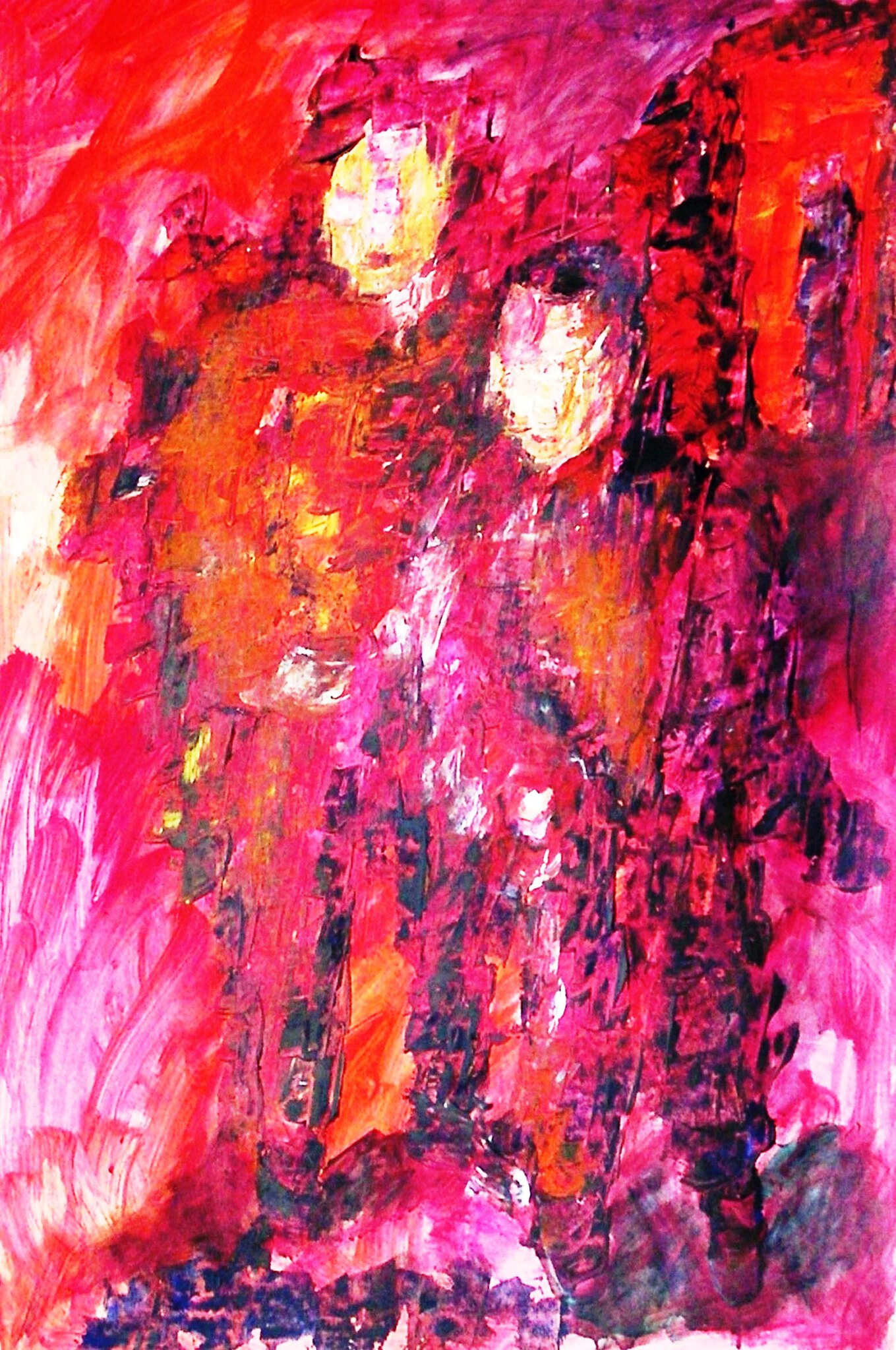 Vluchtelingen - moeder en kind verdwijnen in de bloedrode nacht - zonder gezicht - zonder toekomst. Ze dwalen rond.