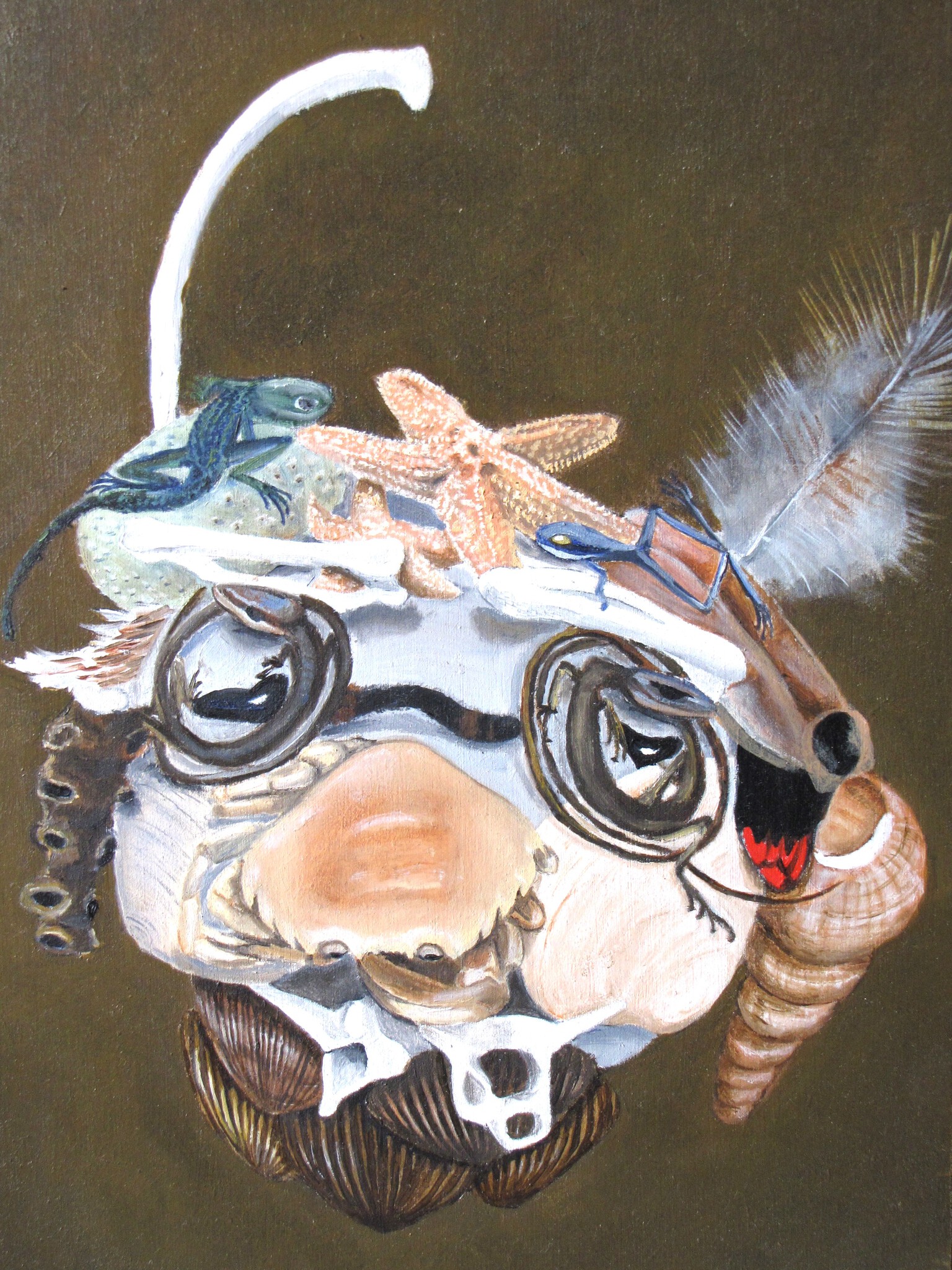 Samengesteld portret van vondsten op het strand en in de duinen; geïnspireerd op de schilderijen van Arcimboldo.