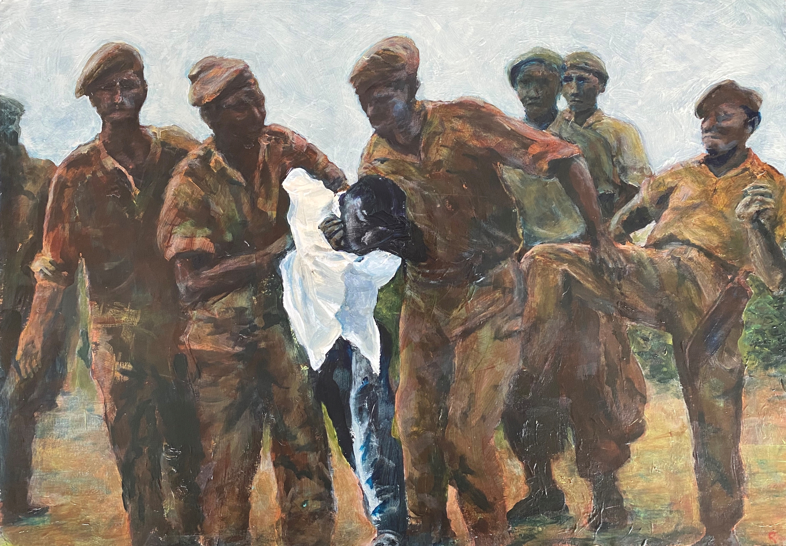 Raynold Bruessing, geboren in 1946 in Den Haag. Ik maak acrylschilderwerk op papier. Autodidact. Ik gebruik afbeeldingen op foto’s voor een verhalend resultaat met de verf.
