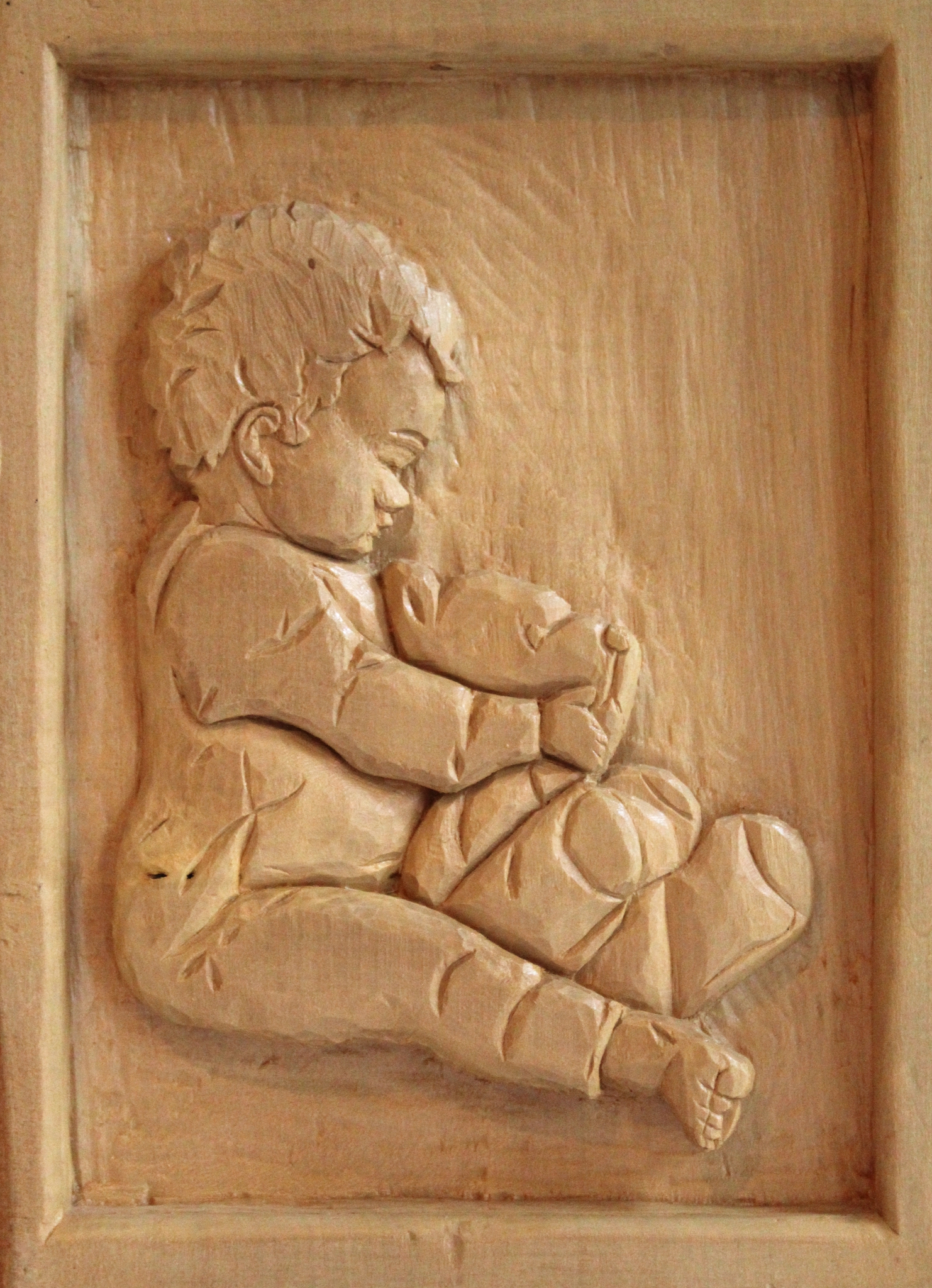 Peuter met beer is handgemaakt en gesneden in 3D. Mijn eerst houtsnijwerk
