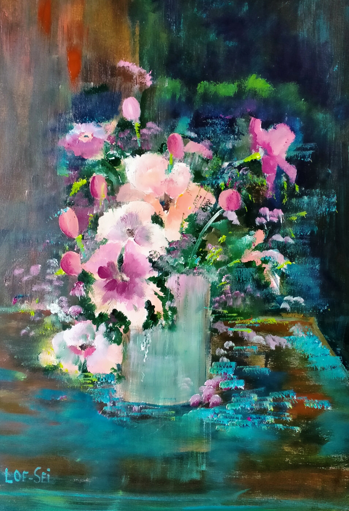 Loe-Sei schildert op grote doeken en heeft een kleurrijke, losse stijl. Het werk is impressionistisch te noemen. Zij is geboren in Eindhoven in 1947 . Grote doeken met vooral bloemen