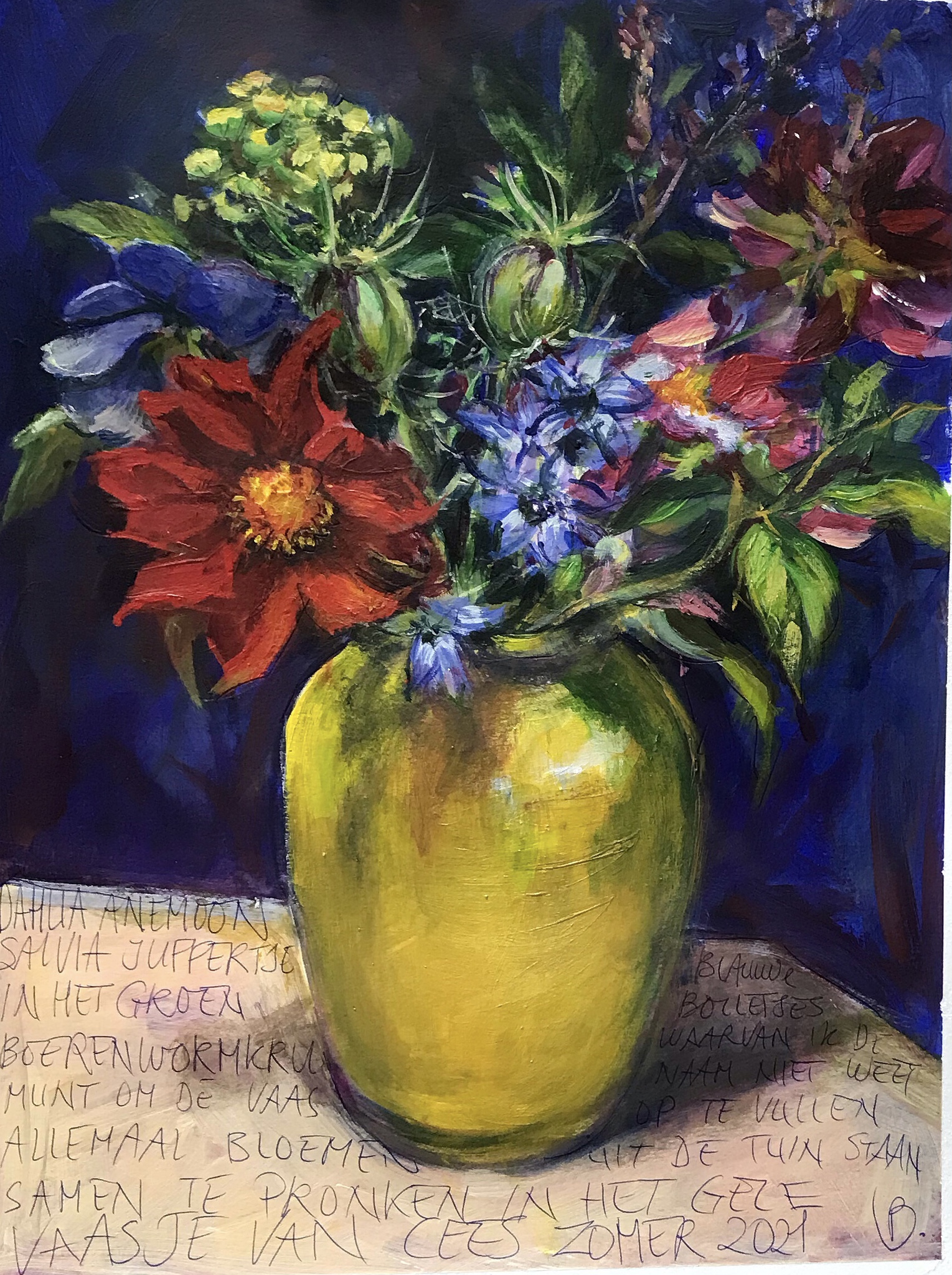 Portretten, bloemstillevens, alledaagse taferelen en landschappen geschilderd in losse toets.