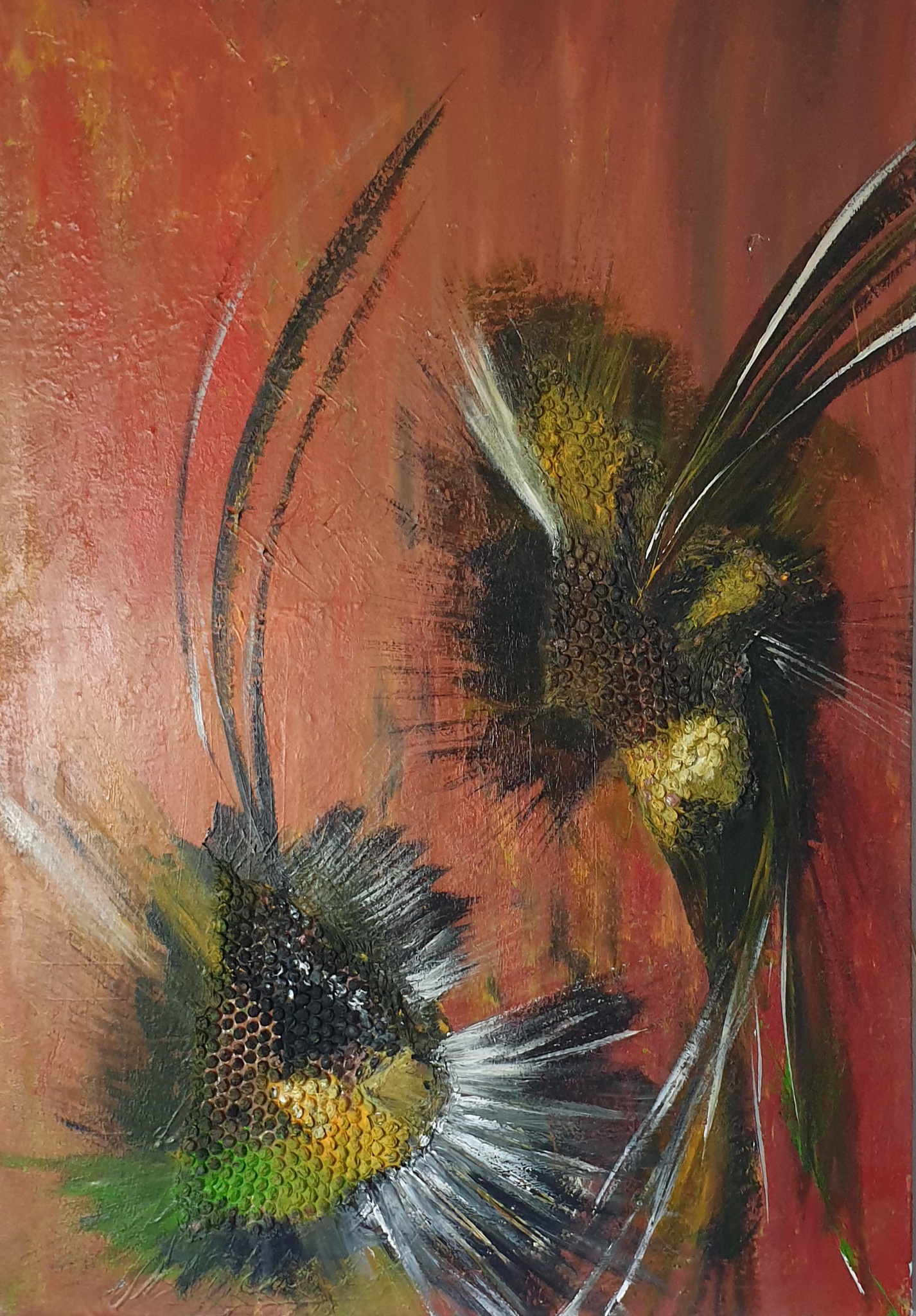 Abracte zomervoorstelling,met reliëf,dik geschilderd