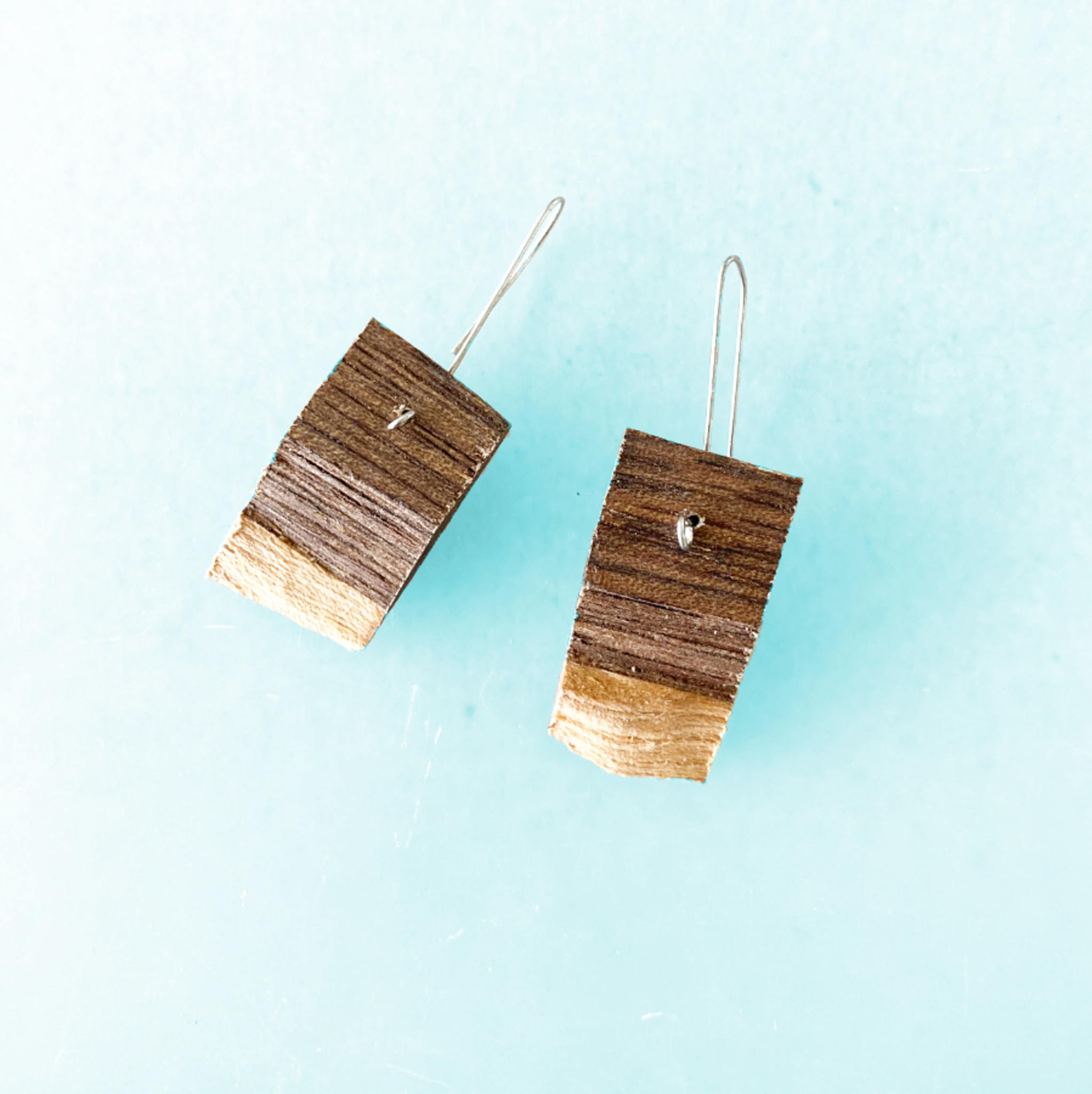 Notenhouten oorbellen in twee kleuren