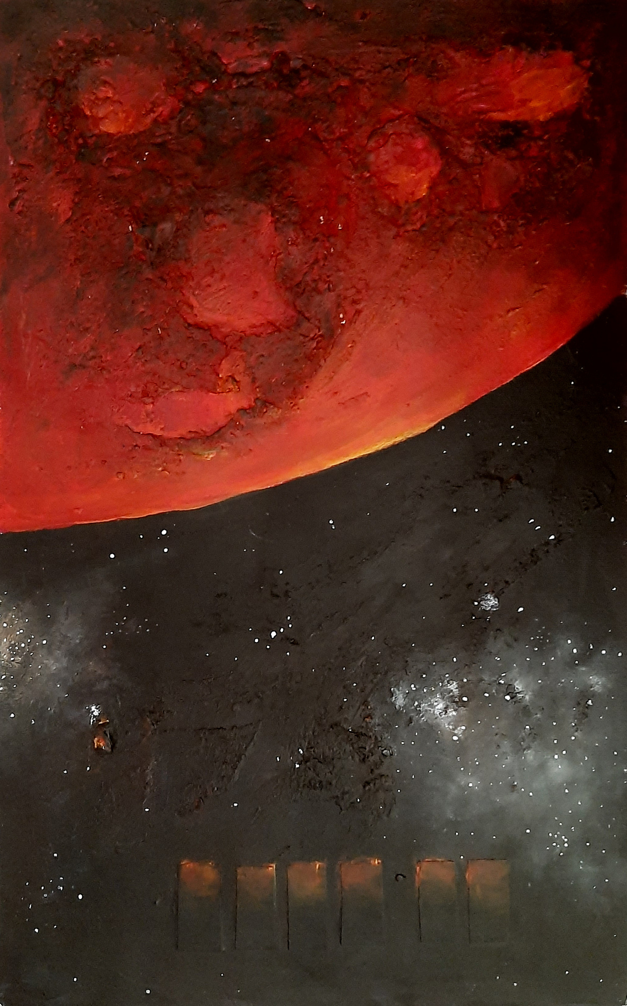 Apocalypse 4 (op 360 grams papier) verwijst naar de wereldberoemde film Apocalypse Now (1979) van Francis Ford Coppola. Die op zijn beurt de film weer baseerde op de roman Heart of Darkness (1899) van Joseph Conrad. In de film spelen o.a. steracteurs als Marlon Brando en Martin Sheen de hoofdrollen. Ten tijde van de Vietnamoorlog wordt Captain Willard de jungle ingestuurd om Colonel Curtz te vinden en te vermoorden. Kurtz (Brando) heeft zijn eigen leger opgebouwd. Terwijl Willard (Sheen) de jungle in vaart, worden hij en de bemanning langzaam overvallen door de gevechten en de gekte van de omgeving. Hun zoektocht brengt hen langs de meest vreemde plekken en vreemde figuren. Langzaam beginnen zij de ellende van de oorlog te doorzien. Voor ze het weten is het meer een kwestie van overleven dan van het vinden van Kurtz. In 2022 is Vladimir Poetin de ‘man in de jungle’. Maar misschien nog wel lastiger te traceren dan Kurtz in Apocalypse Now. Toch ademt mijn Apocalypse meer rust en vrede uit, vind ik. Doet me zelf meer denken aan een eindeloze reis naar de eeuwigheid. Dood en verderf zijn al gepasseerde stations.