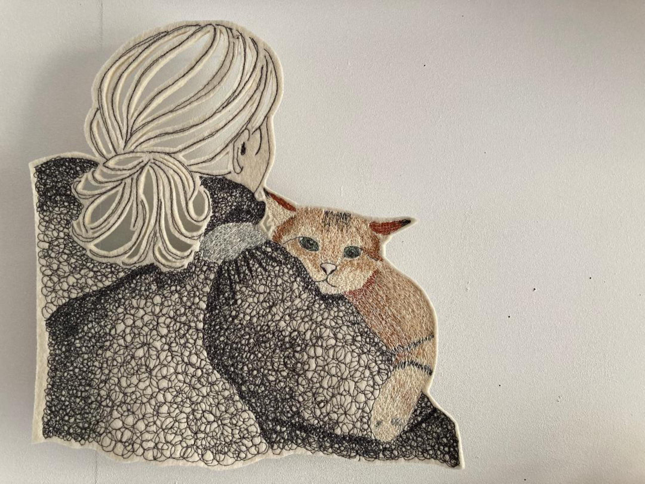 Portret Realistisch Huisdier Vluchteling Textielkunst