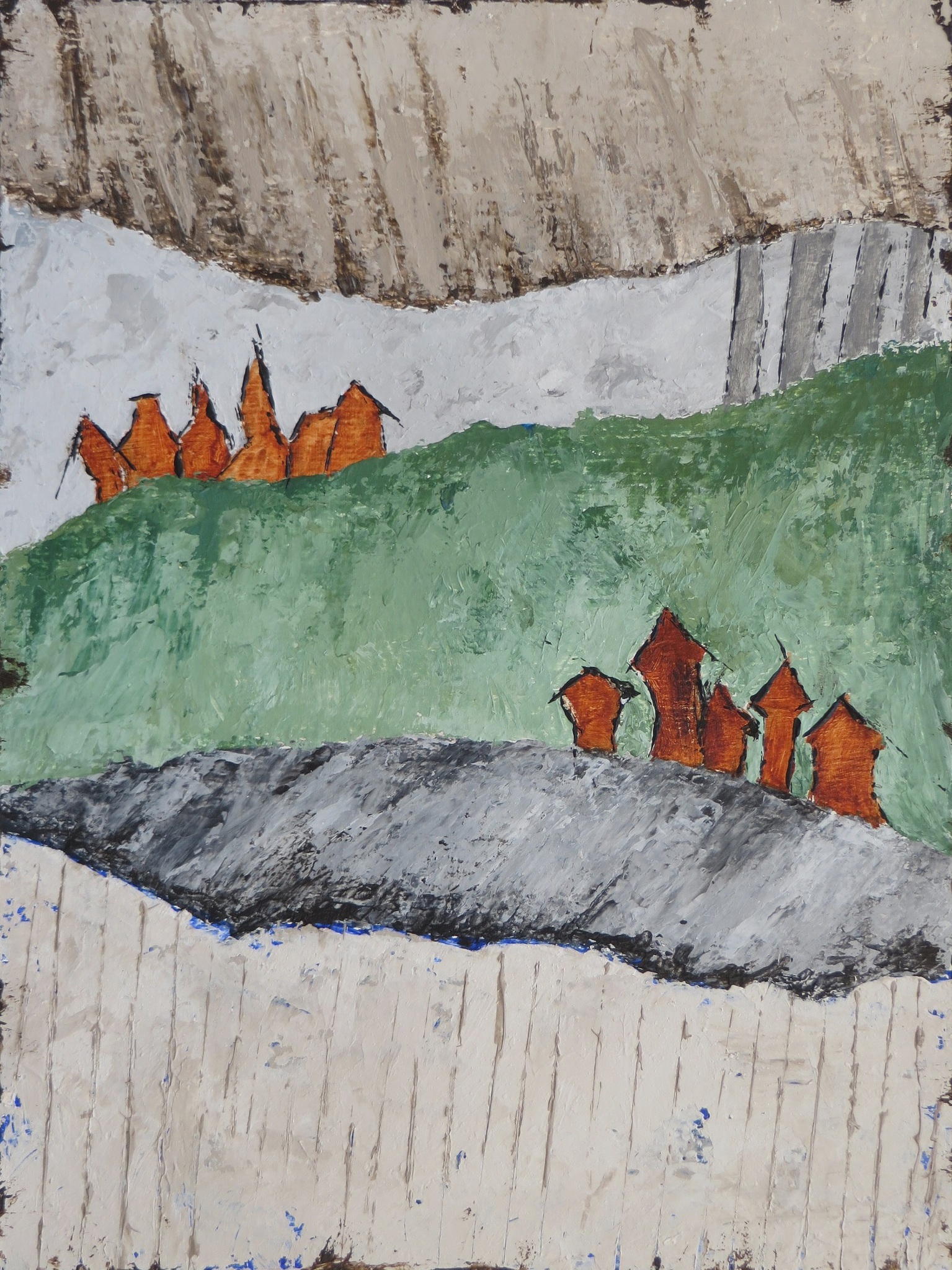 Landschap Acryl Bergen Huisjes Heuvels