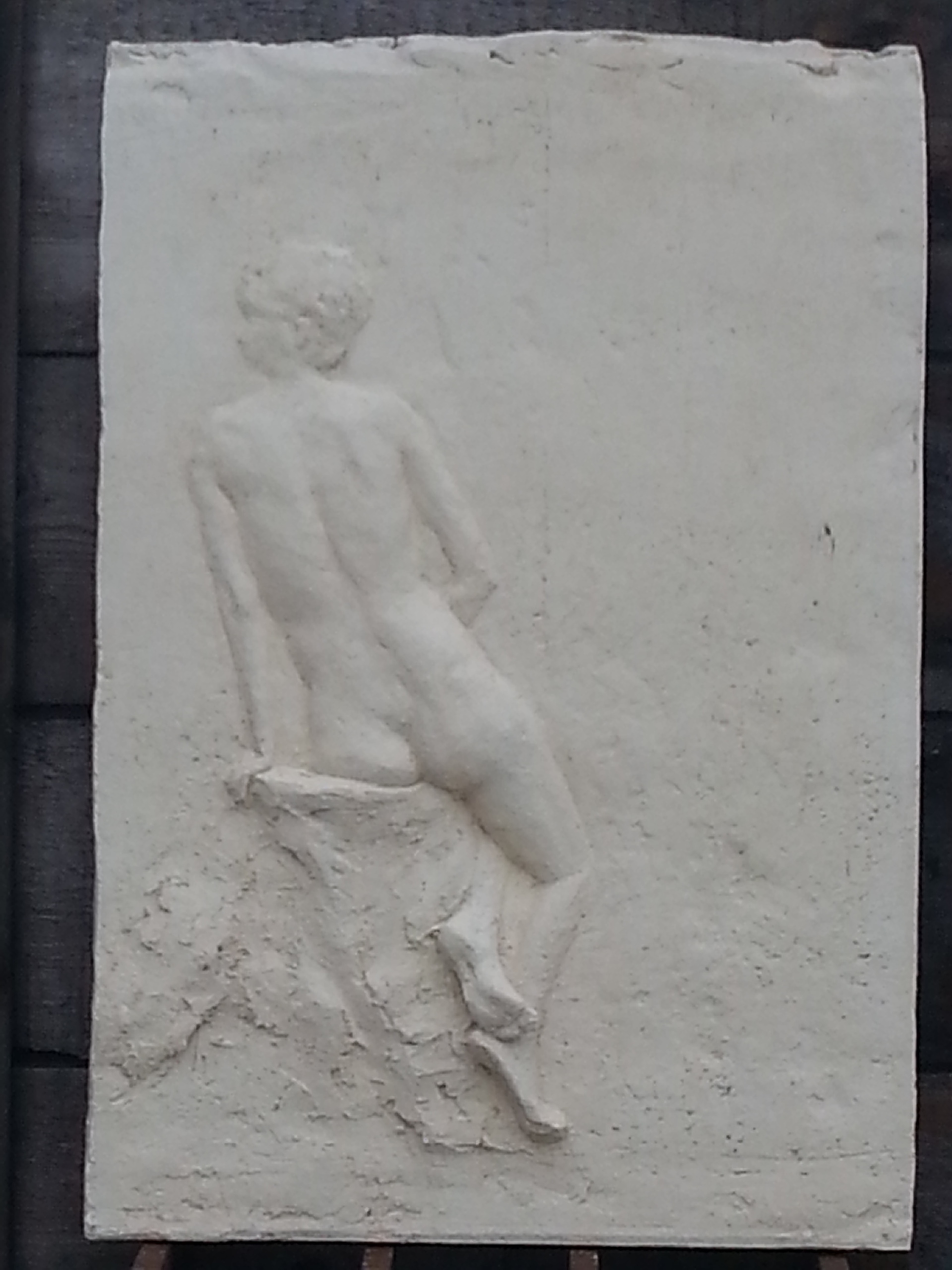 Relief Meisje op boomstronk