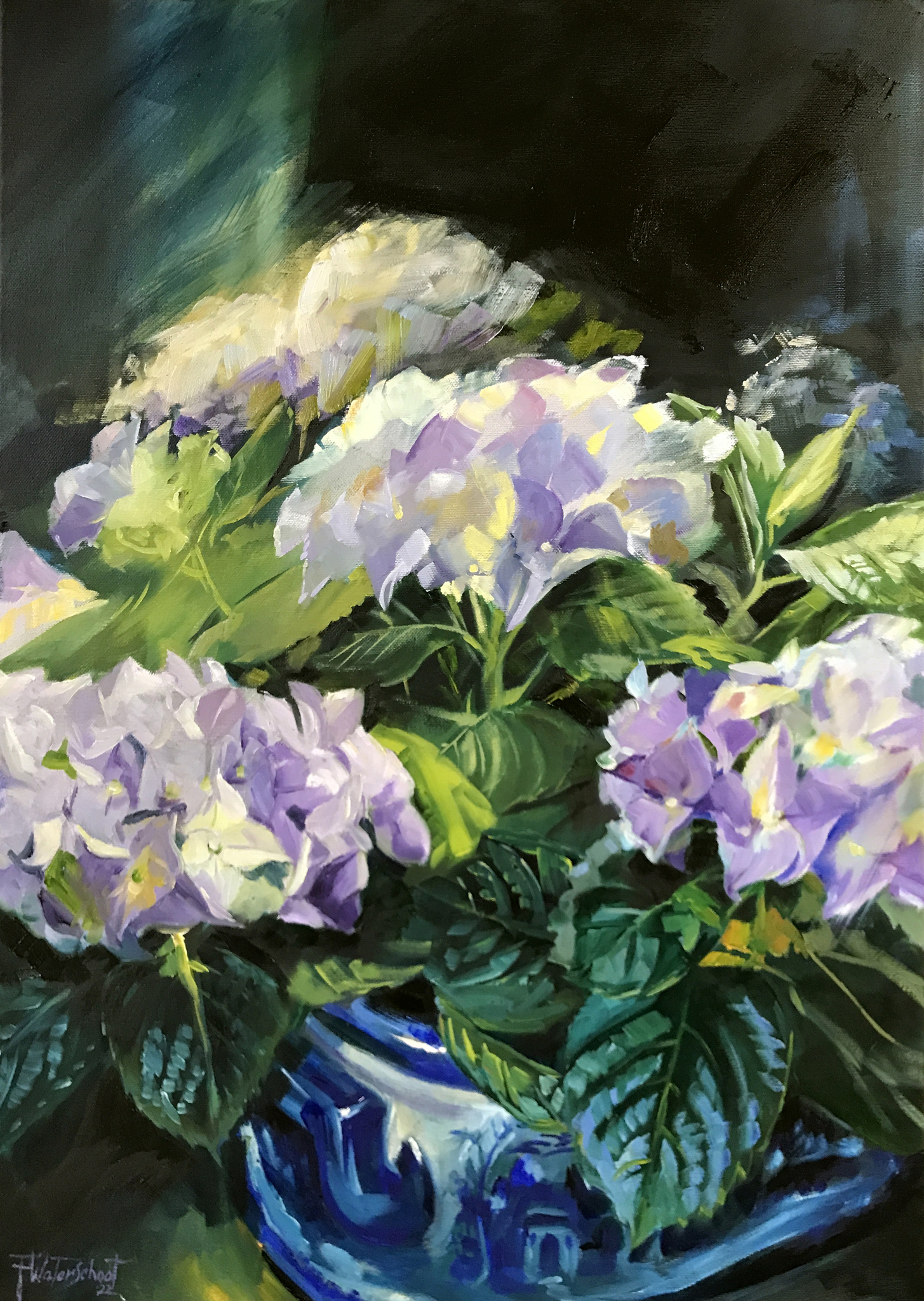Portretten en meer De drang tot schilderen was altijd al aanwezig. Fried Waterschoot zijn figuratieve olieverfschilderijen kenmerken zich door uitbundig kleurgebruik, losse penseeltoetsen en veel aandacht voor licht en sfeer. De inspiratie kan overal vandaan komen. De mogelijkheid tot het plaatsen van een opdracht is natuurlijk daarvan de meest gerichte vorm. Vraag gerust en vrijblijvend naar de mogelijkheden daarvan. Alledaagse onderwerpen leiden in zijn atelier tot aantrekkelijke werken. Het in olieverf mooier maken van de werkelijkheid is één van de uitgangspunten van zijn interpretatie van het begrip impressionisme.