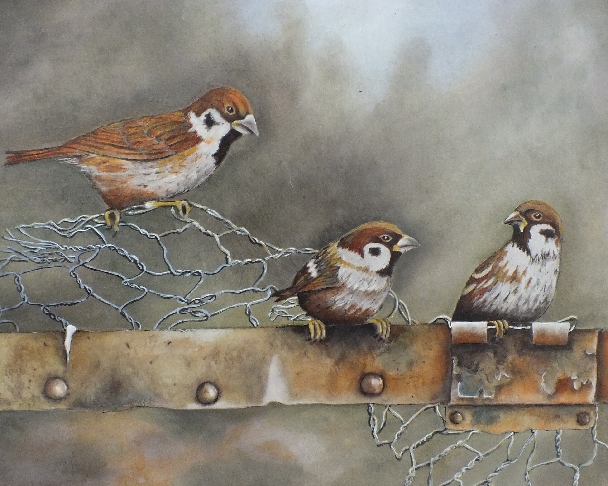 Mussen op draadhek.
